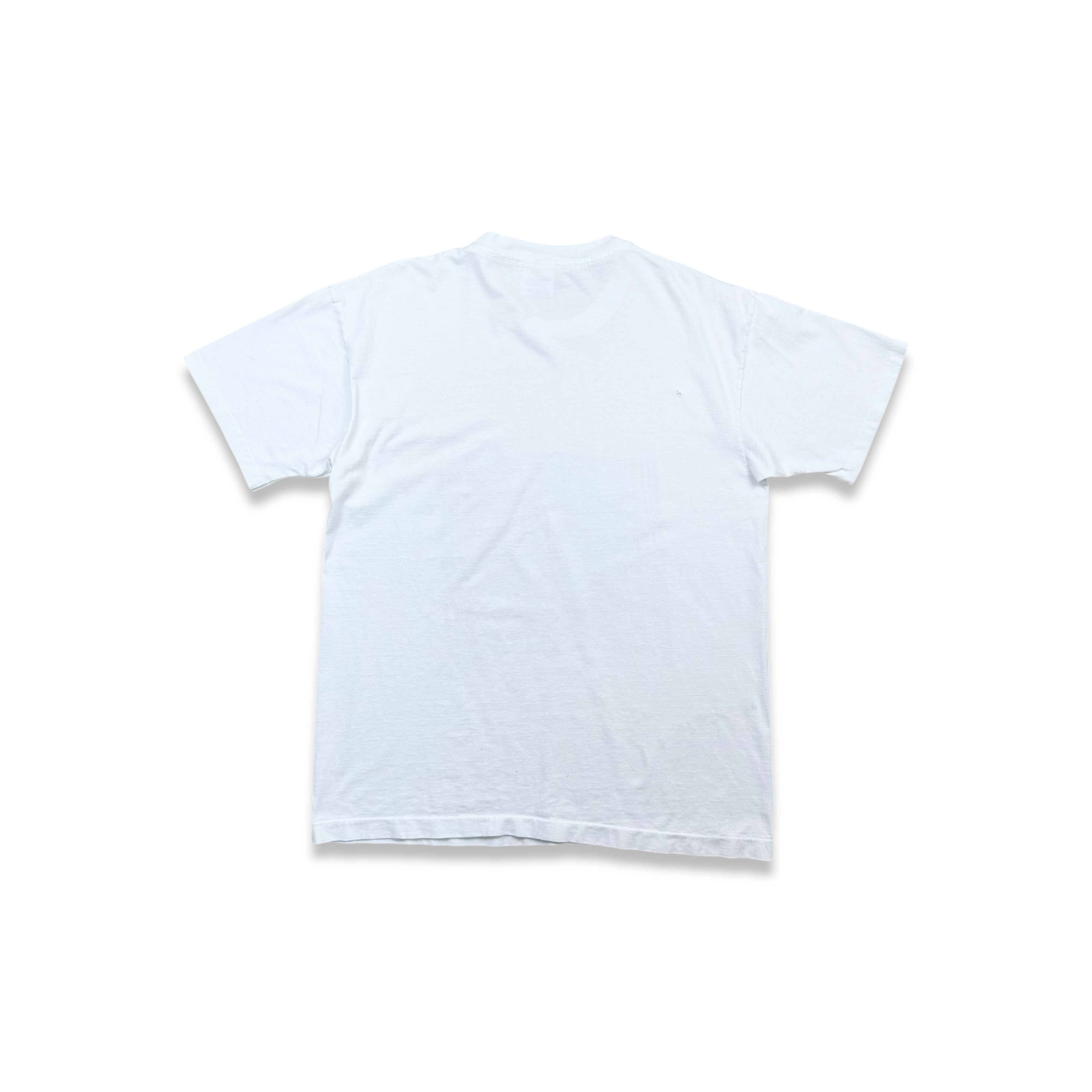 ブランドは、売上の90%を環境団体に寄付していたエコ志向レーベル「Human-i-Tees」。その理念を体現するような、思想とアートが一体となった貴重なアーカイブ・ピース。