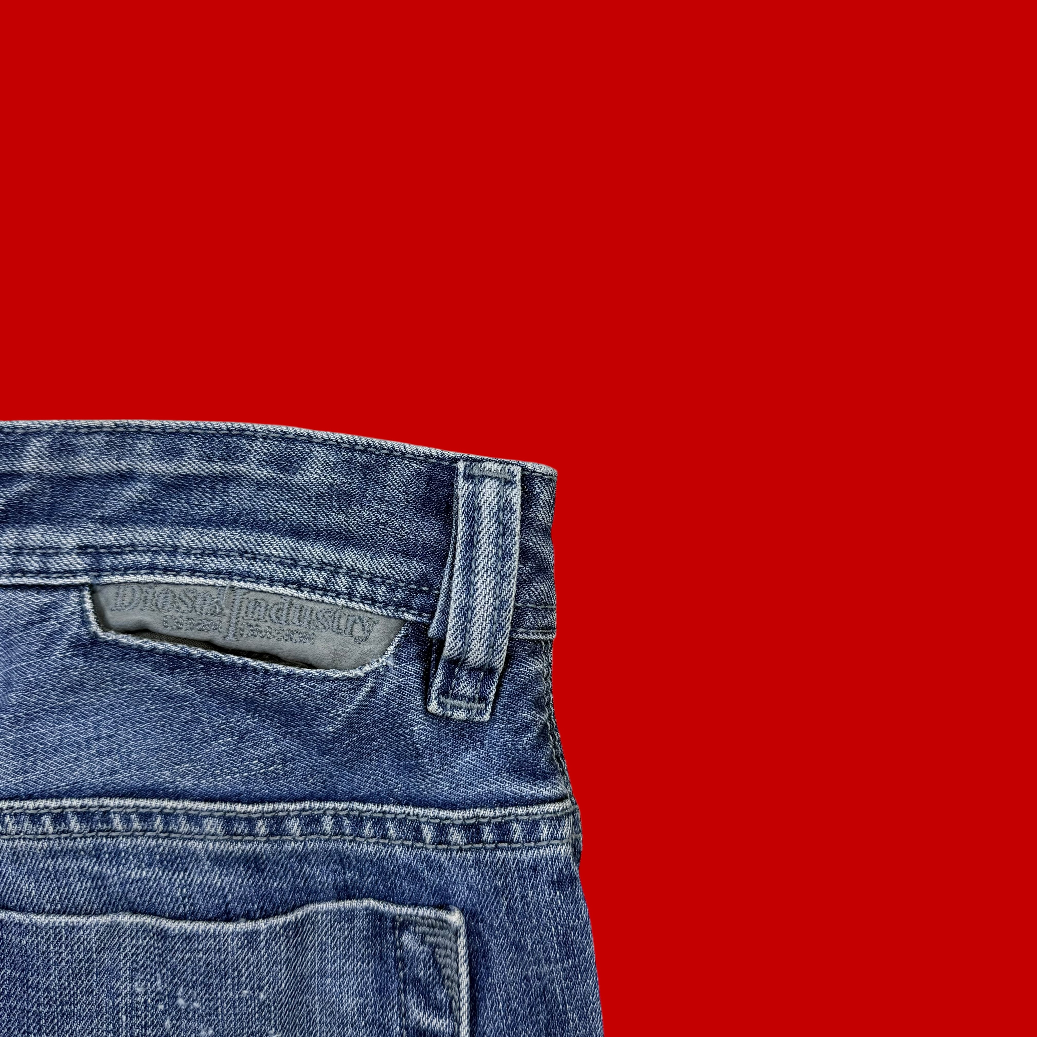 シルエットは細身ながらタイトすぎないストレートで、ブーツやスニーカーとも好相性。2000年代のストリートやクラブカルチャーを象徴する一本で、現行モデルでは味わえない雰囲気を楽しめます。