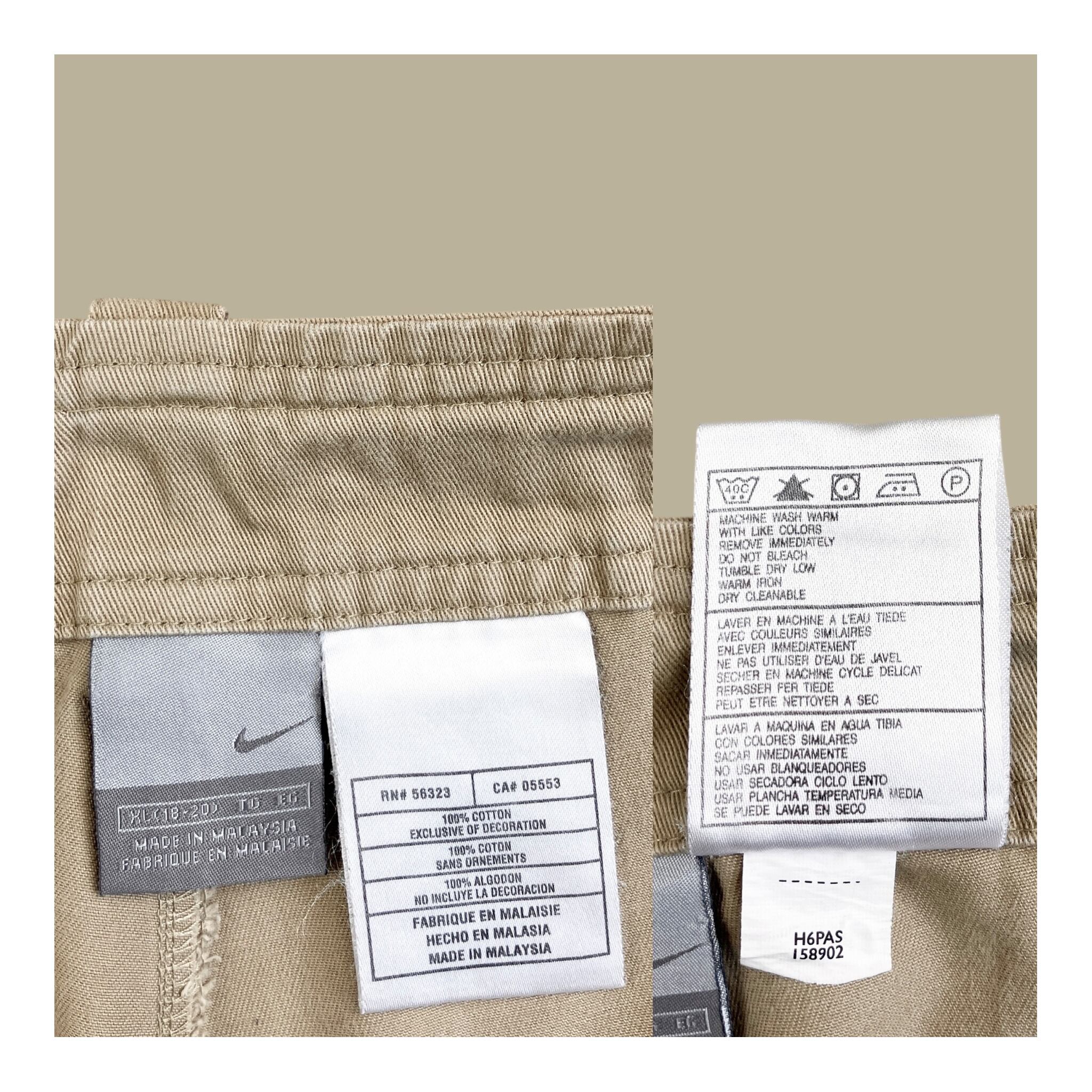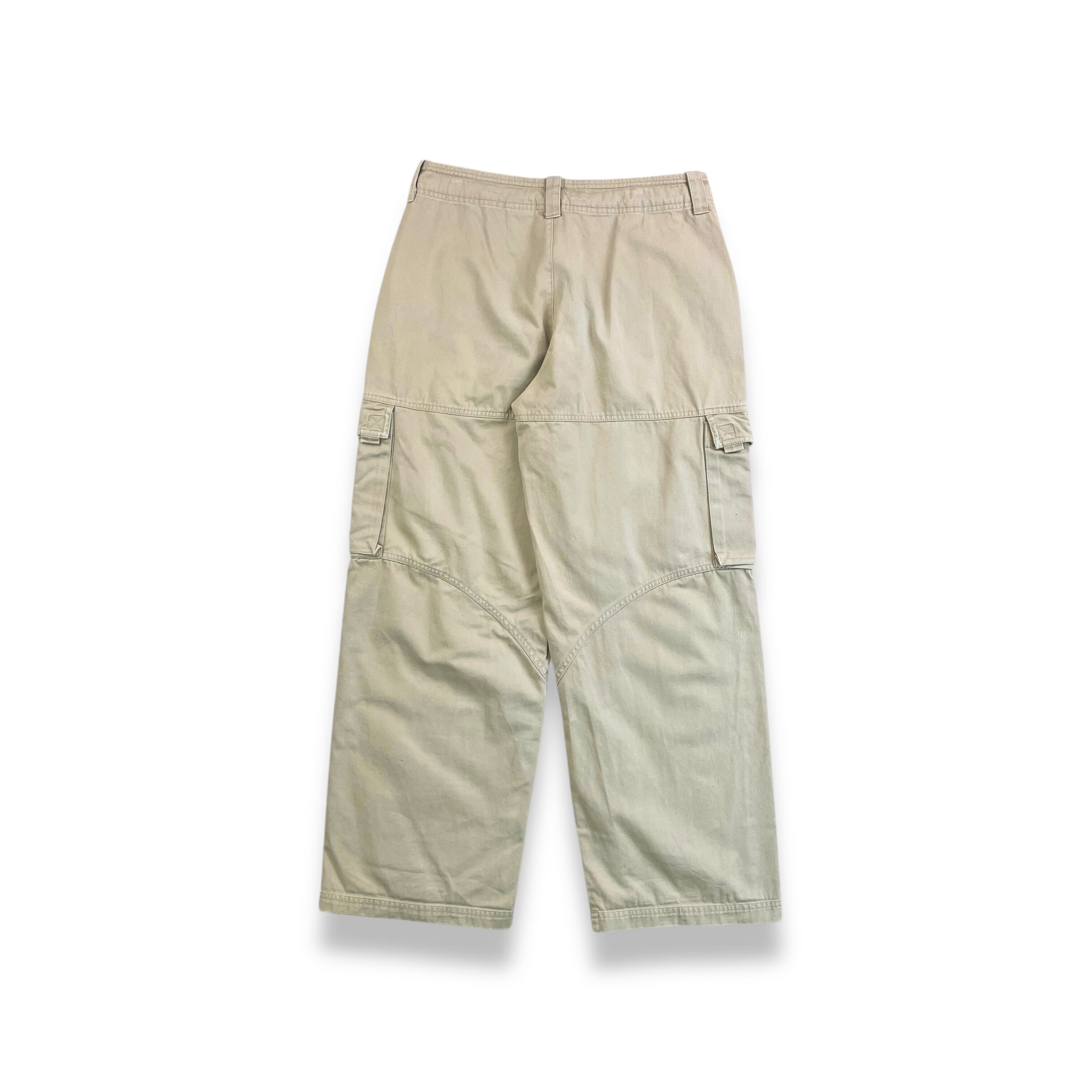 ベージュのコットン100%生地を採用し、タフでデイリーに使いやすい一本です。フロントはジップフライ仕様。両腿には大きなフラップ付きカーゴポケットを備え、片方にはスウッシュロゴ刺繍を配置。スポーツとワークを掛け合わせた当時らしいデザインが魅力です。