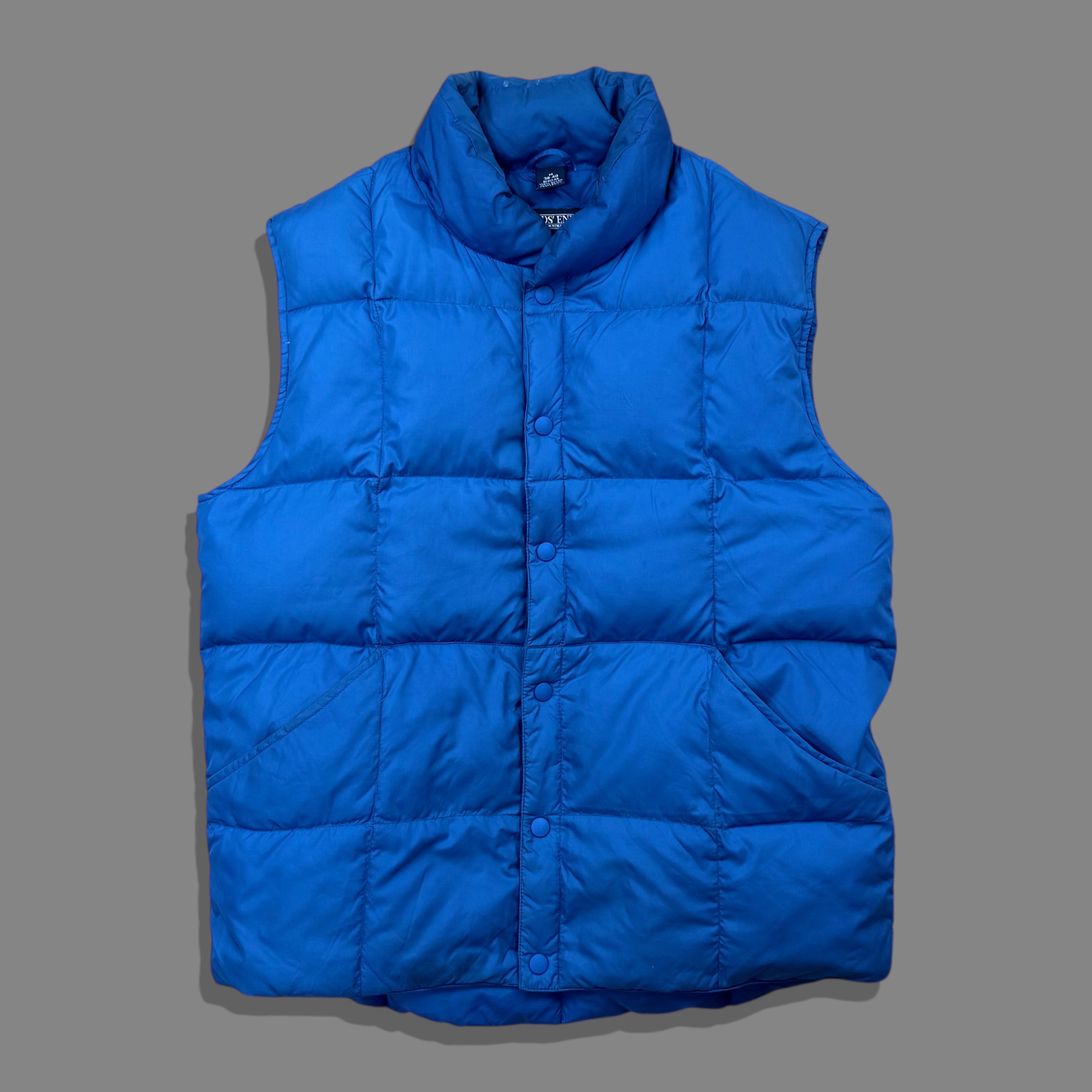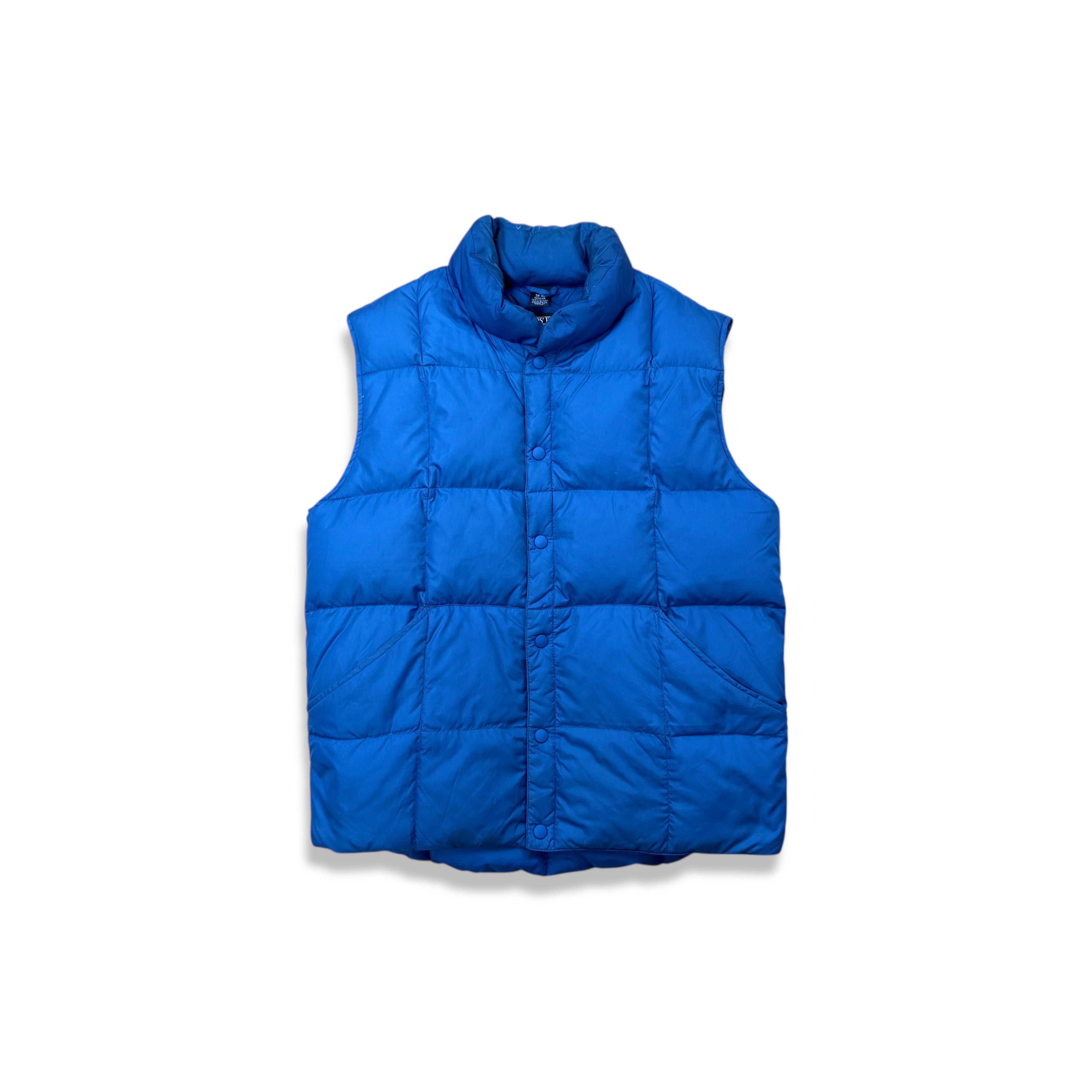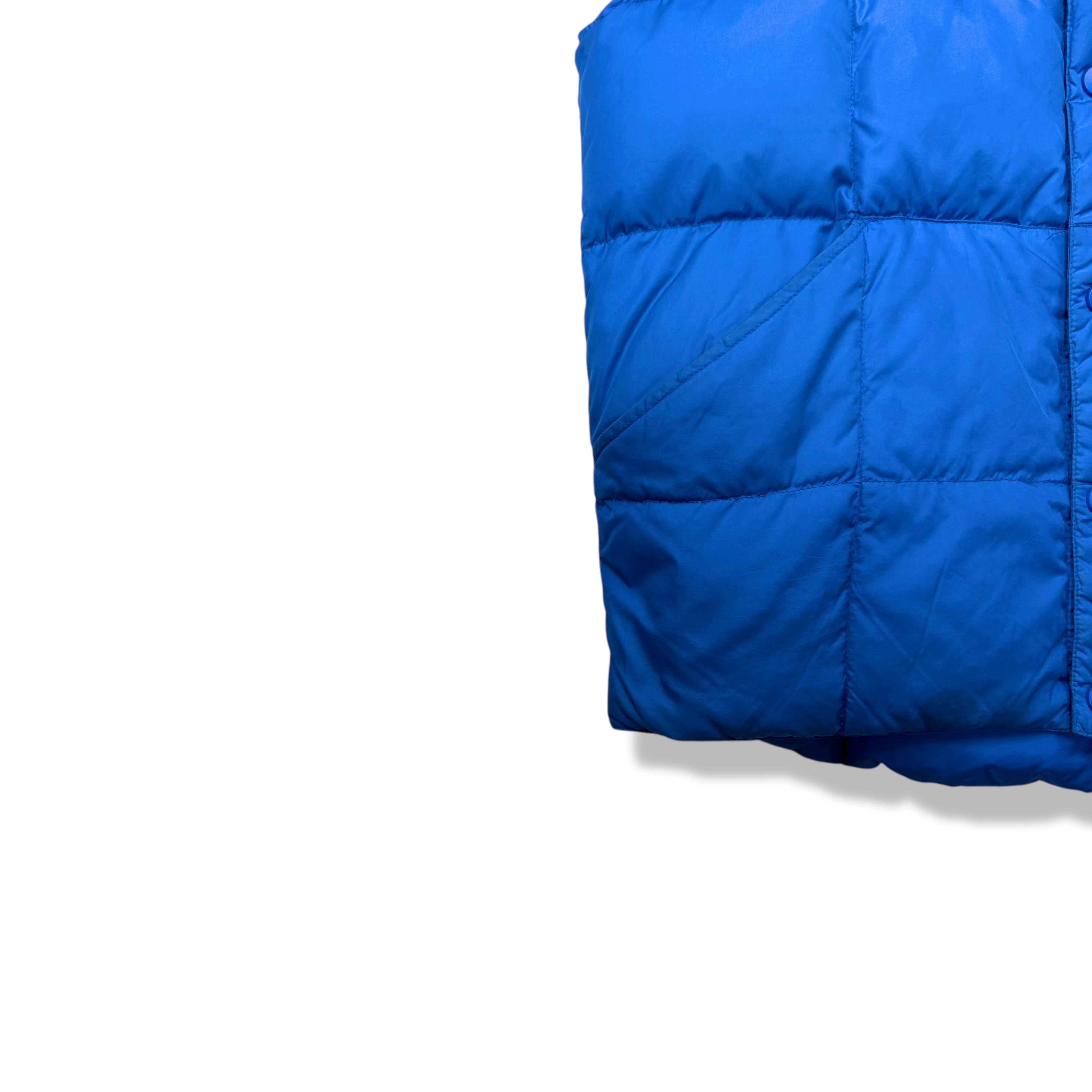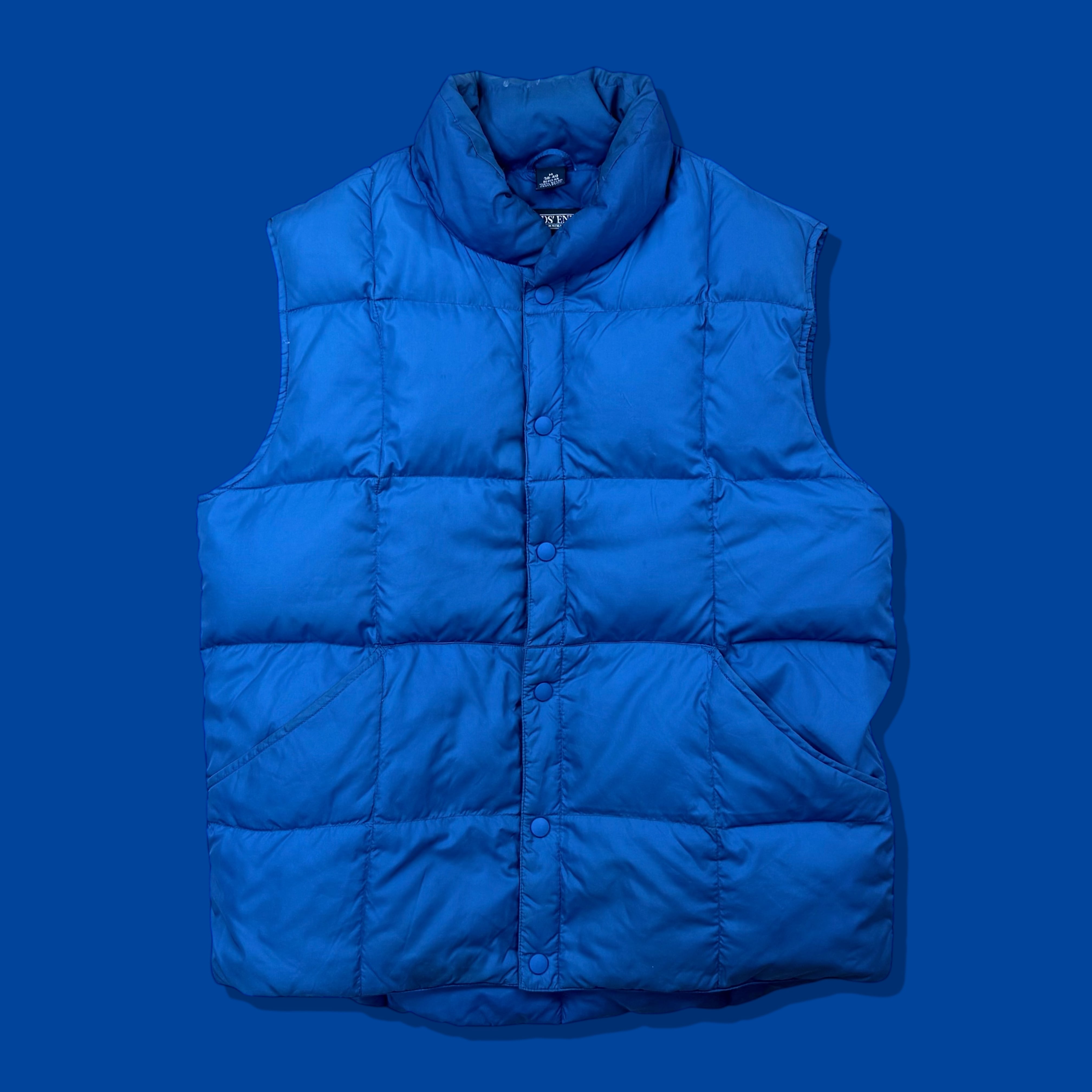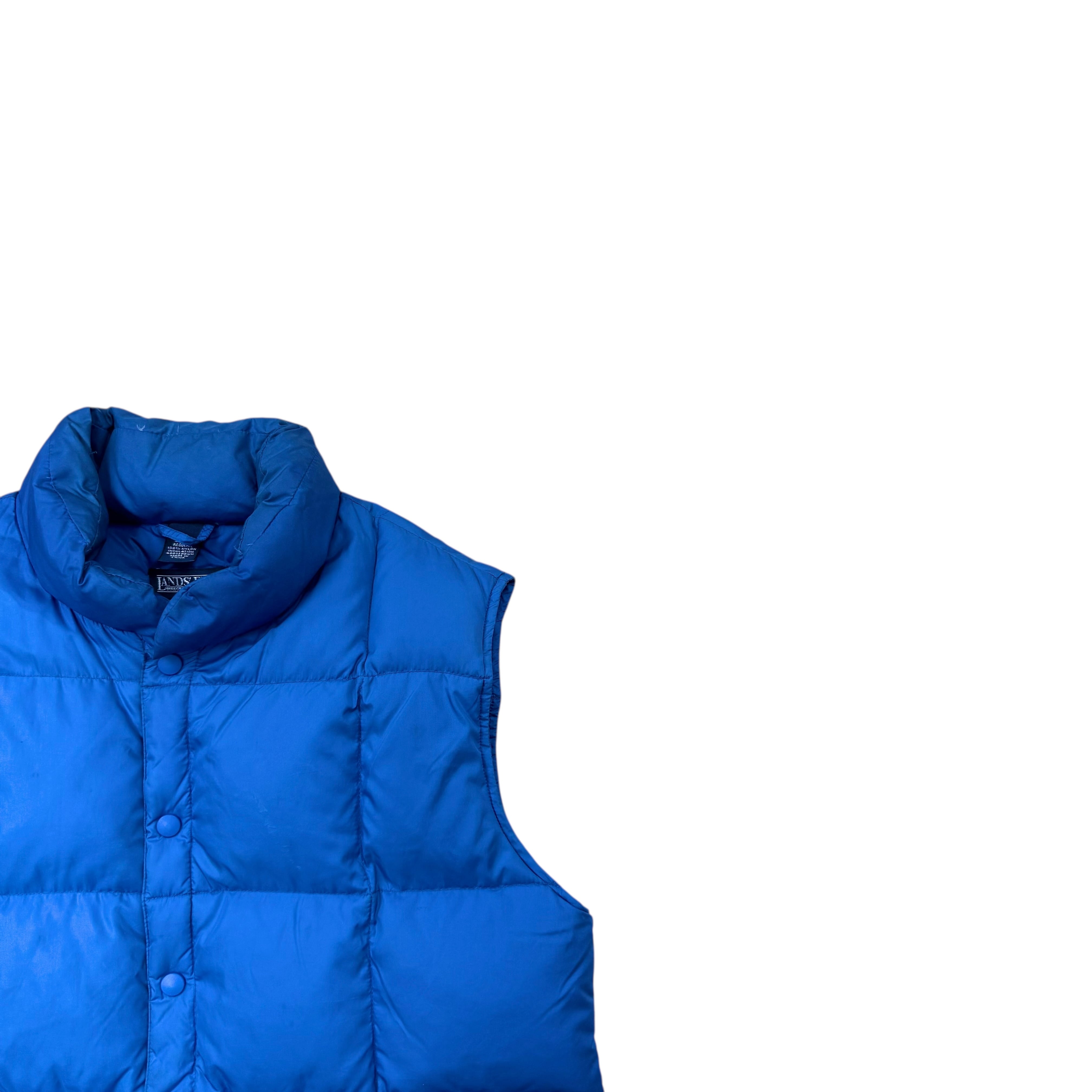 1990年代のランズエンドによるグースダウンベスト。鮮やかなロイヤルブルーのカラーが特徴で、90sアウトドアらしい素朴な雰囲気をしっかりまとった一着です。
