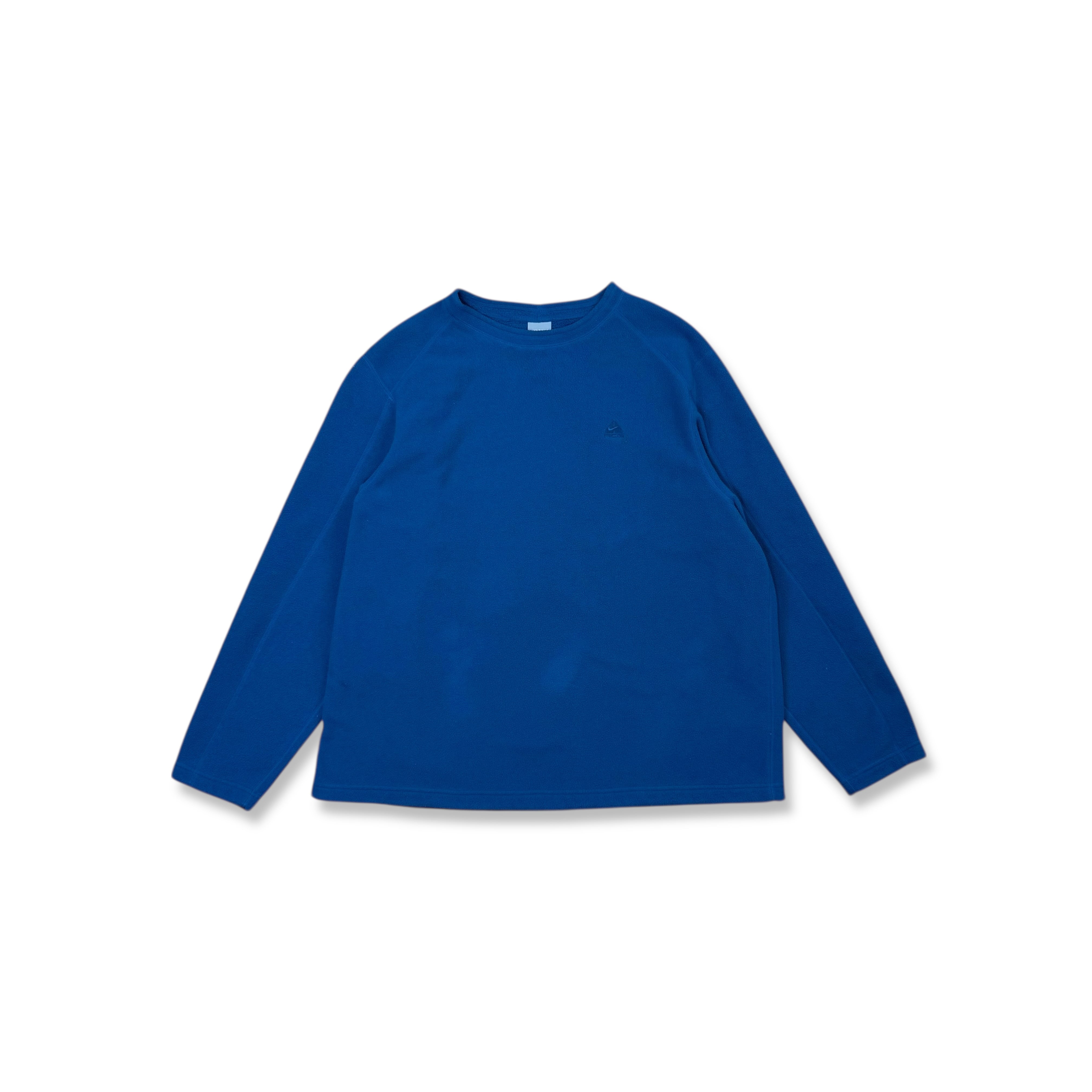 首元はクルーネック仕様。レイヤードもしやすく、気負わず着られるシンプルなデザインです。くすんだブルーカラーに、フロントには同色のACGロゴをさりげなく配置し、Y2KのACGらしい控えめなテック感が感じられます。