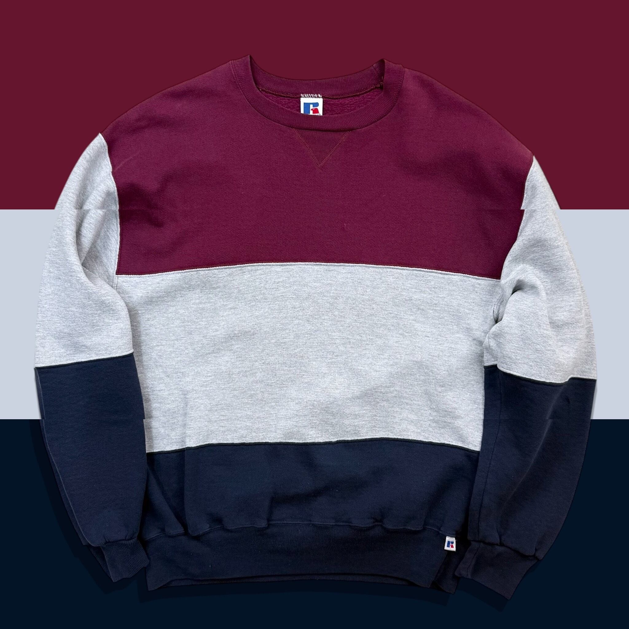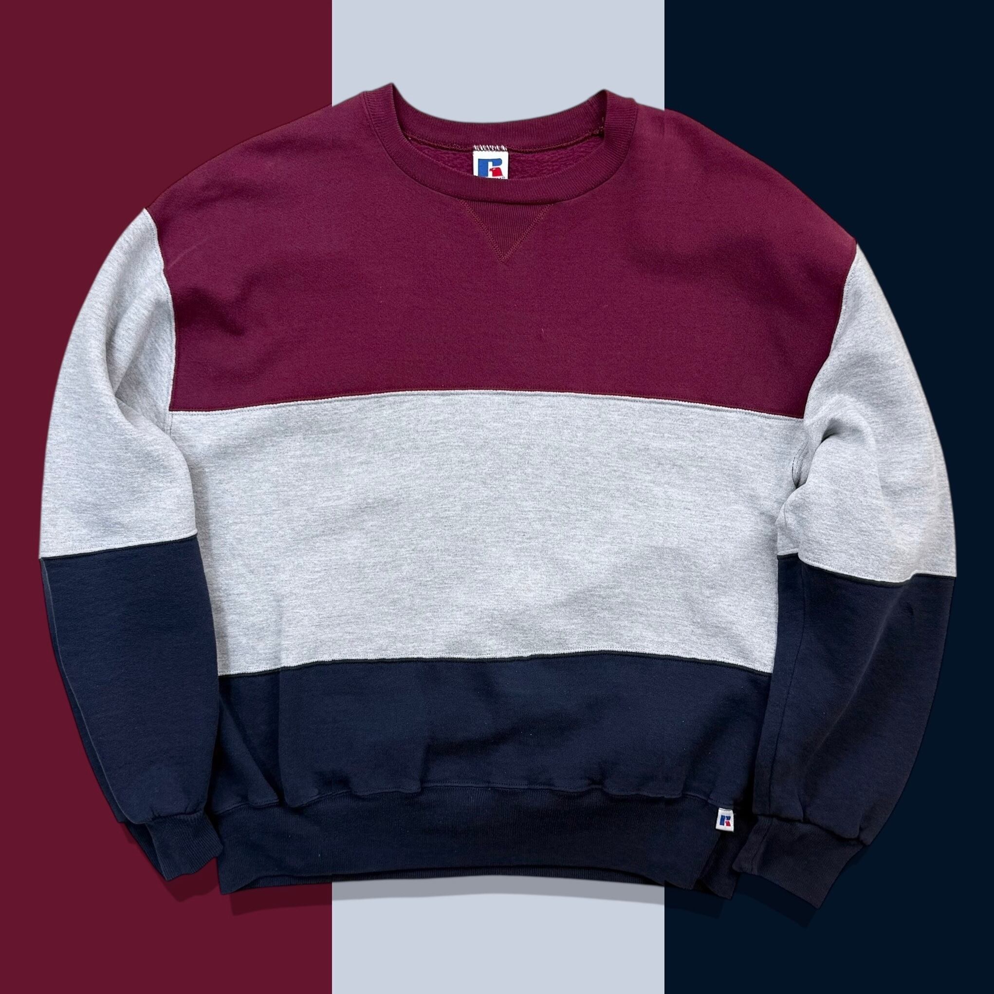90年代のラッセルアスレティックによる、3トーン配色のクルーネックスウェットシャツ。