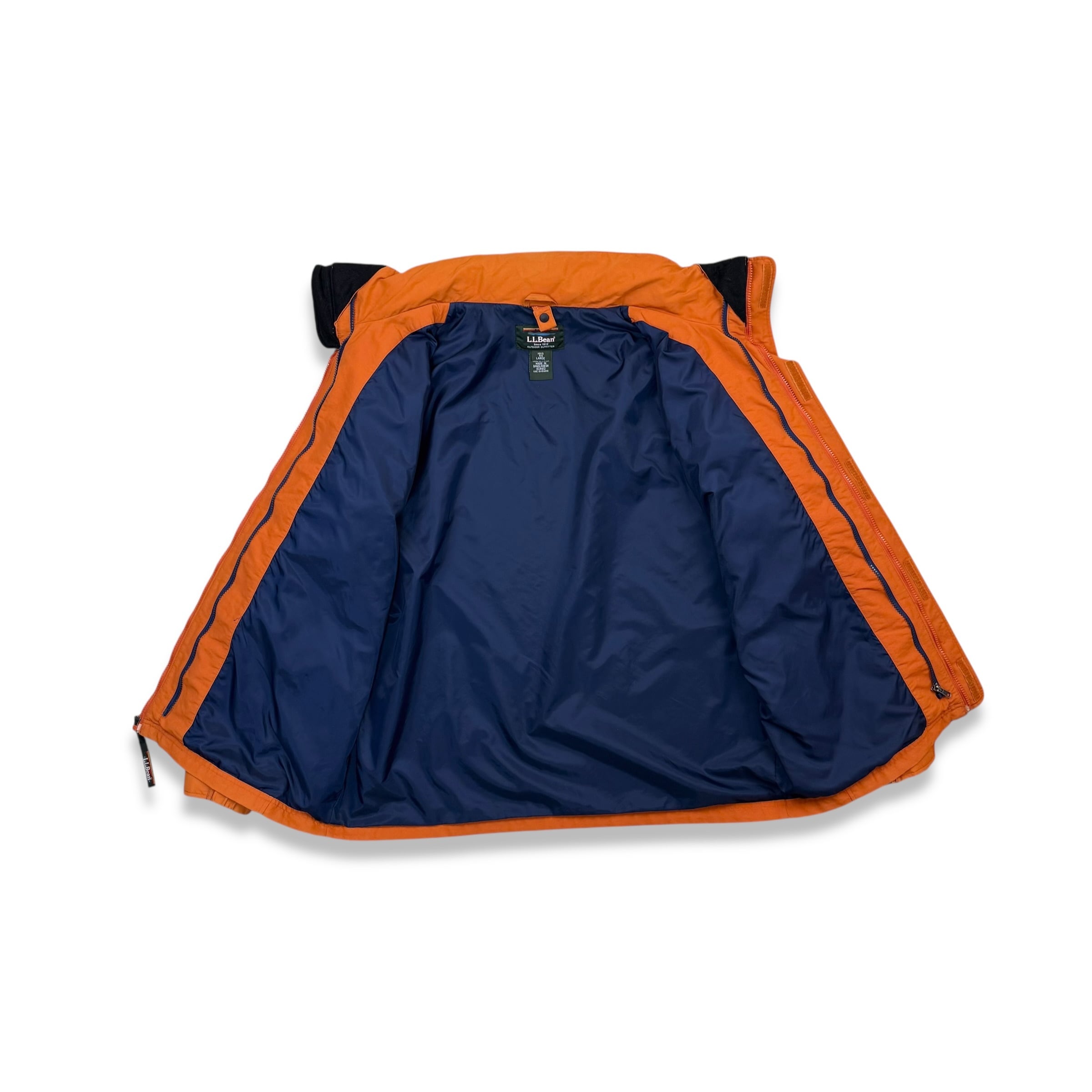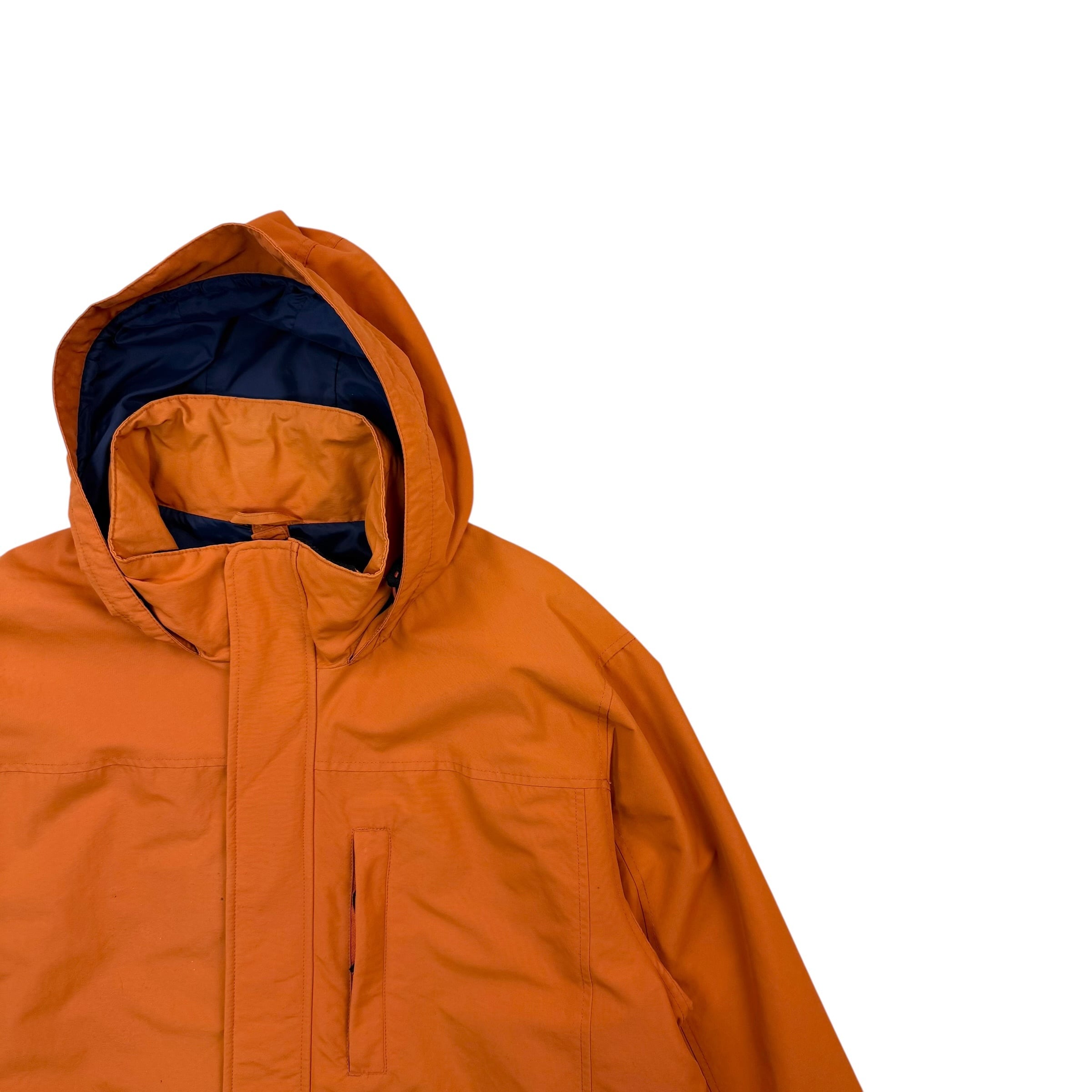 鮮やかなオレンジのナイロンシェルに、ネイビーライニングを合わせたコントラストの効いた配色。アウトドアブランドらしい視認性の高いカラーで、シンプルな構成ながら存在感のある一着です。
