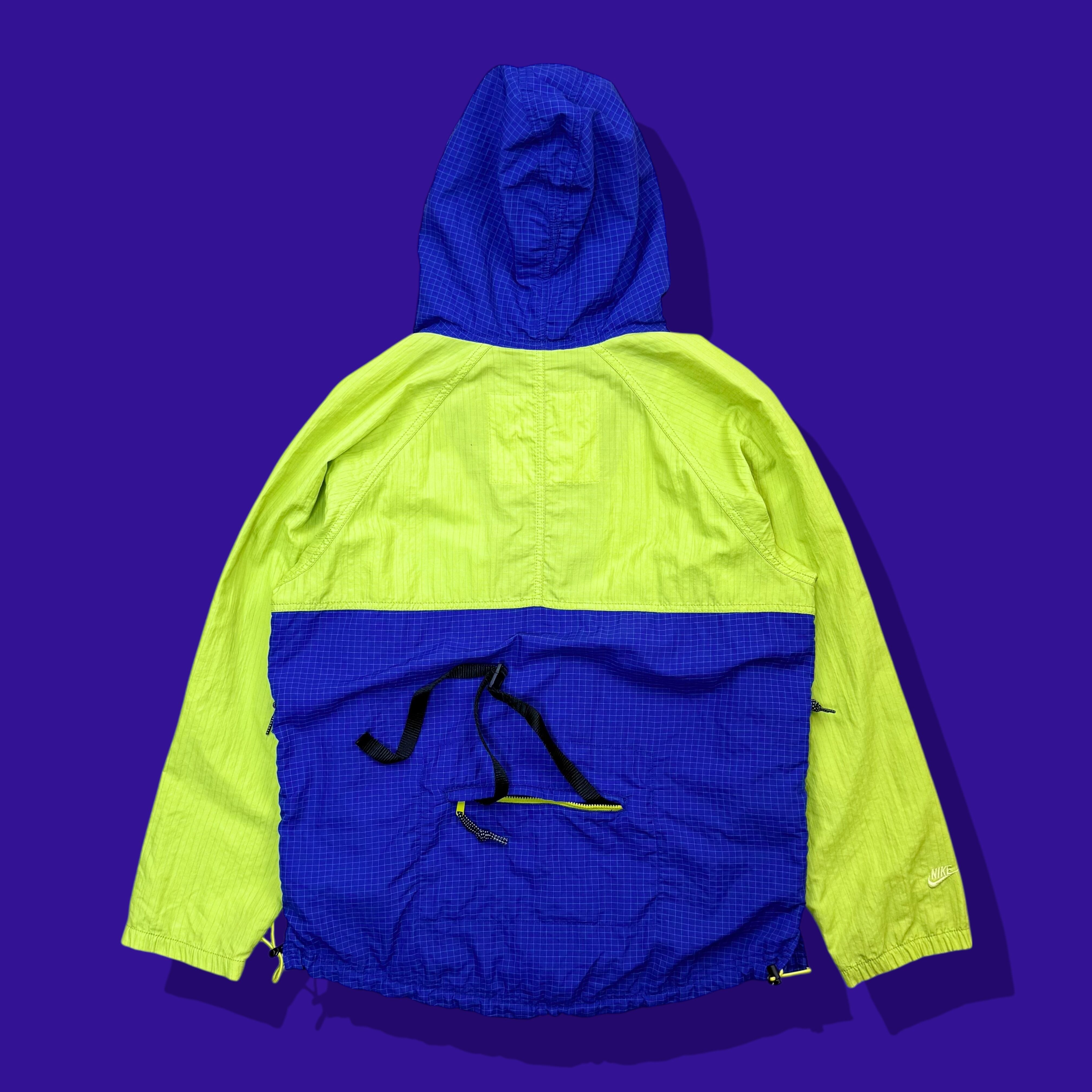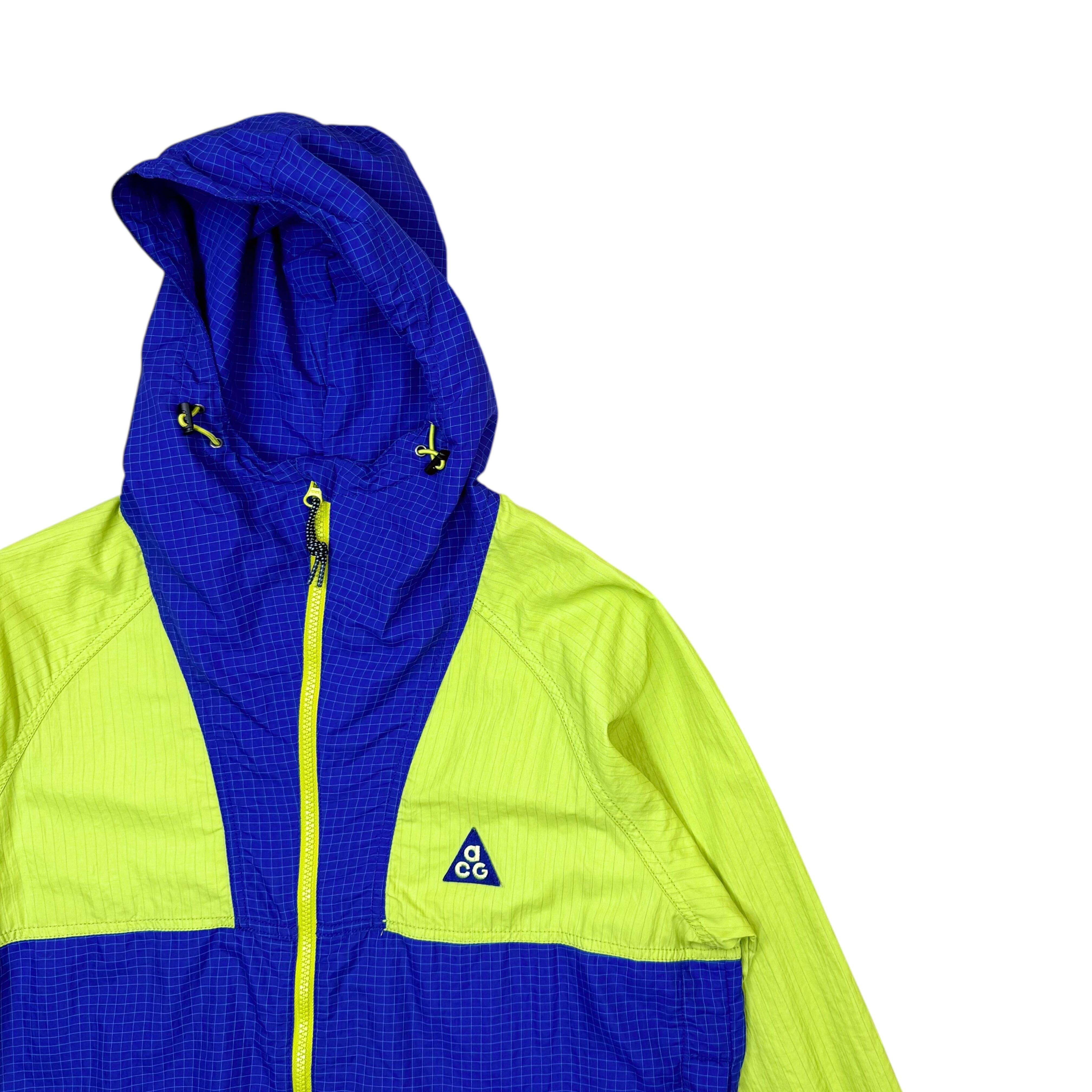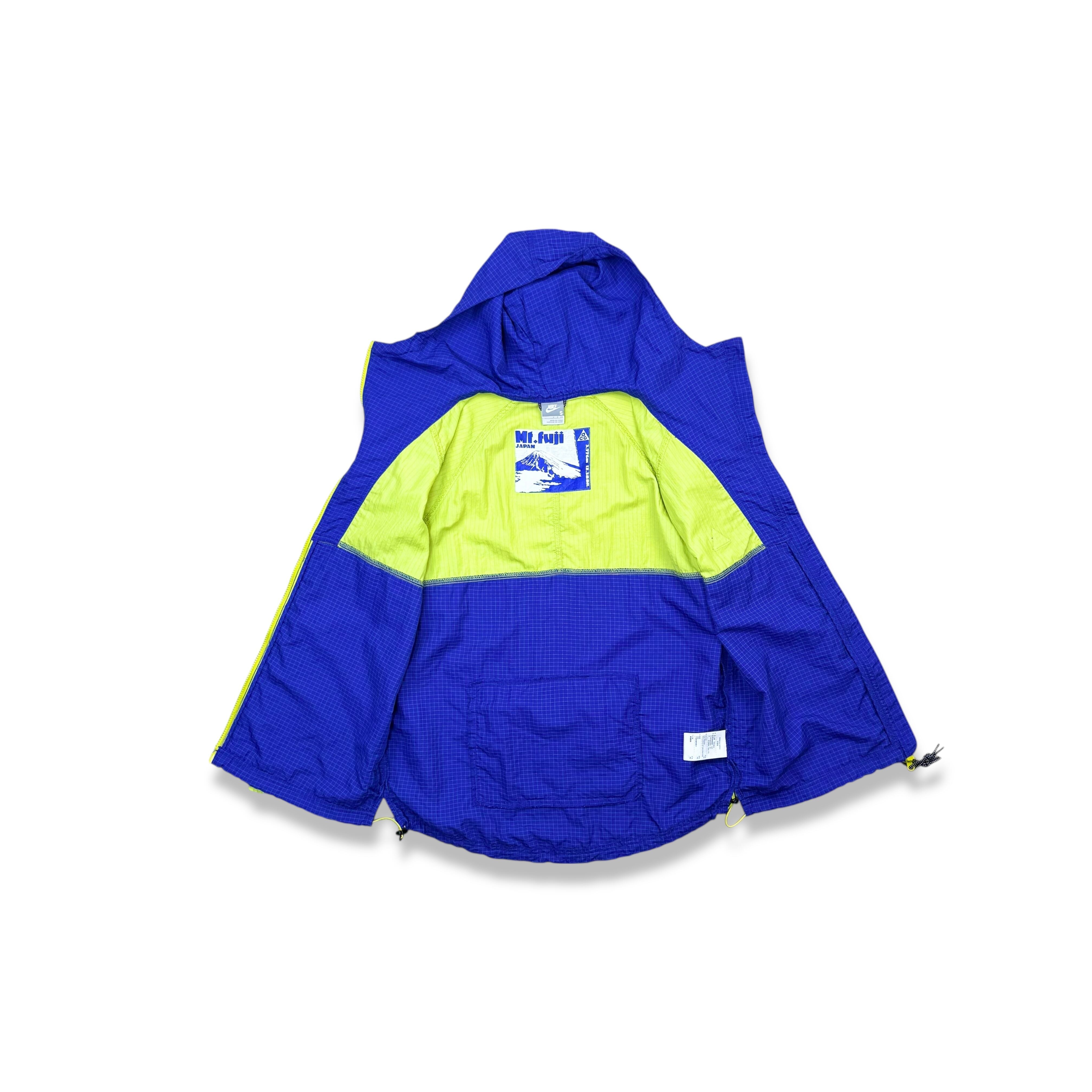 2007年製ナイキACGのブルーパープル×ネオンイエローのコントラストが際立つツートンカラーで、青みの強いパープルが奥行きを持ち、00年代後期らしいテックムードを演出する一着です。