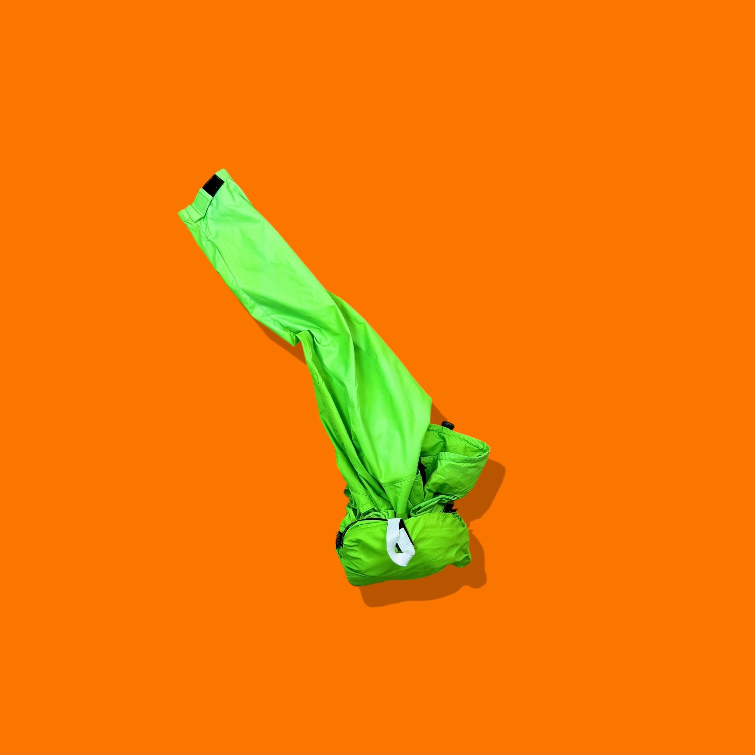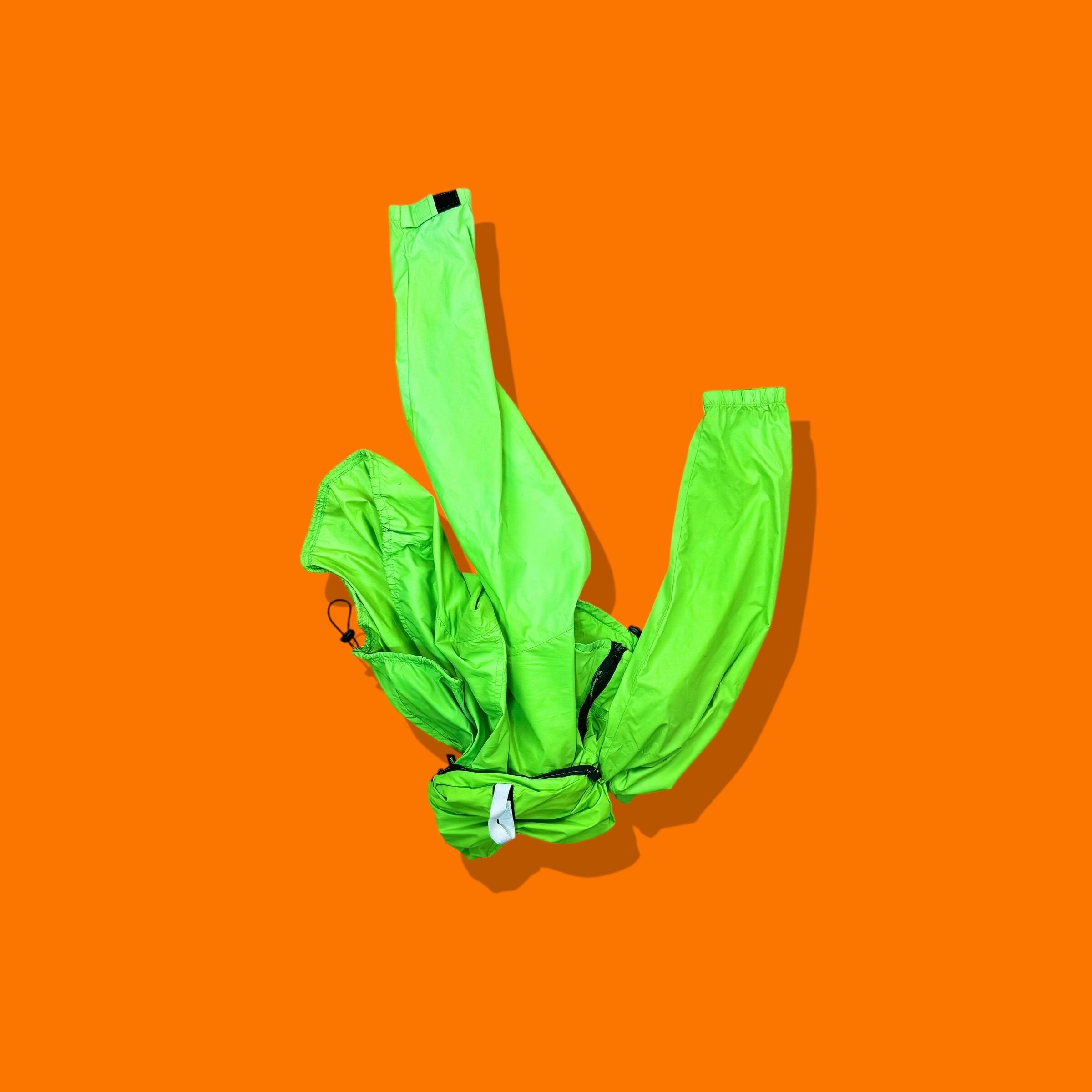 カラーは鮮烈なネオングリーン。視認性を意識したハイビズカラーにブラックジップのコントラスト。装飾を抑えたミニマルな構成ながら、色そのもので成立する存在感があります。