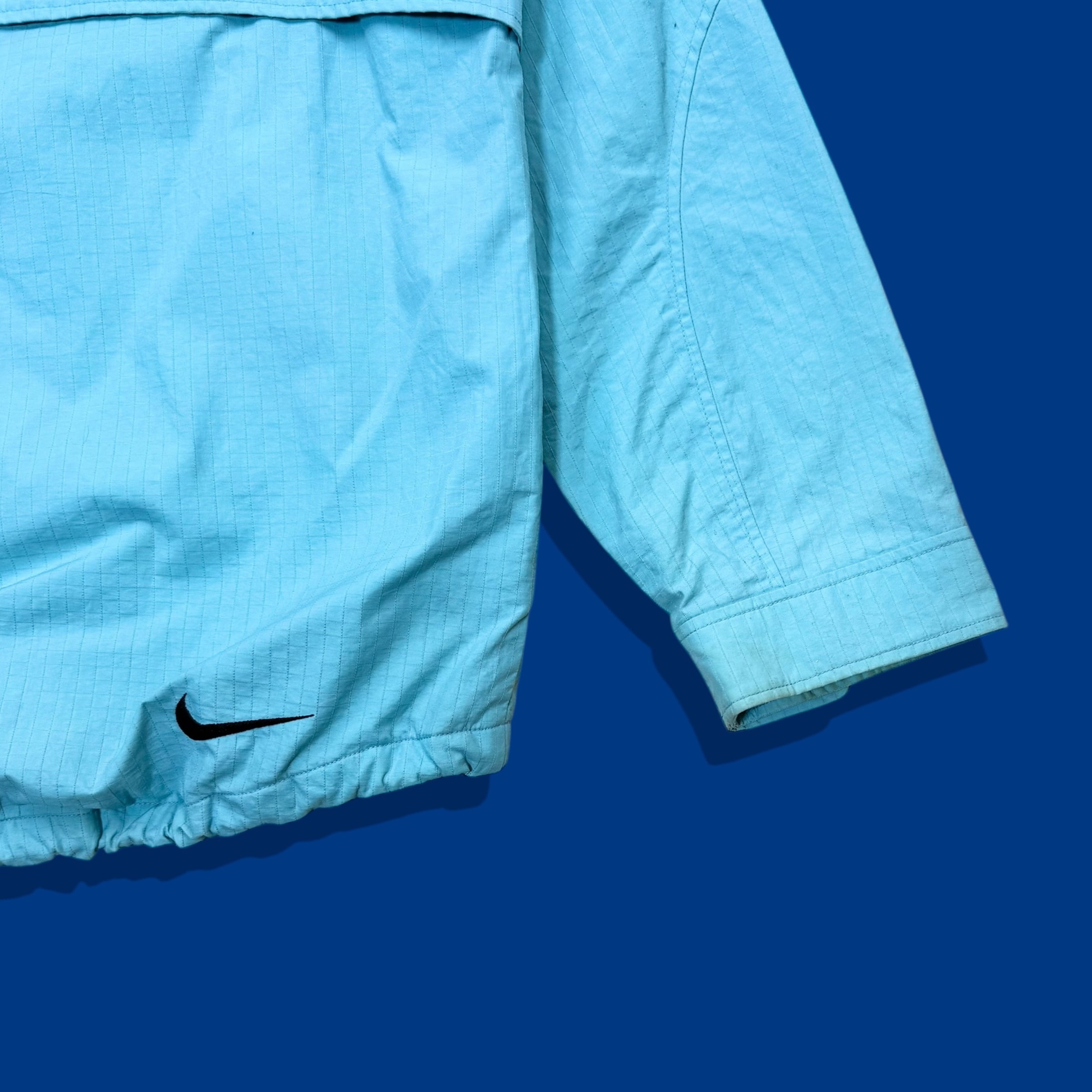 1998年のナイキのナイロンアノラックパーカー。ライトブルーのワントーンに、細かい格子状のリップストップナイロン。