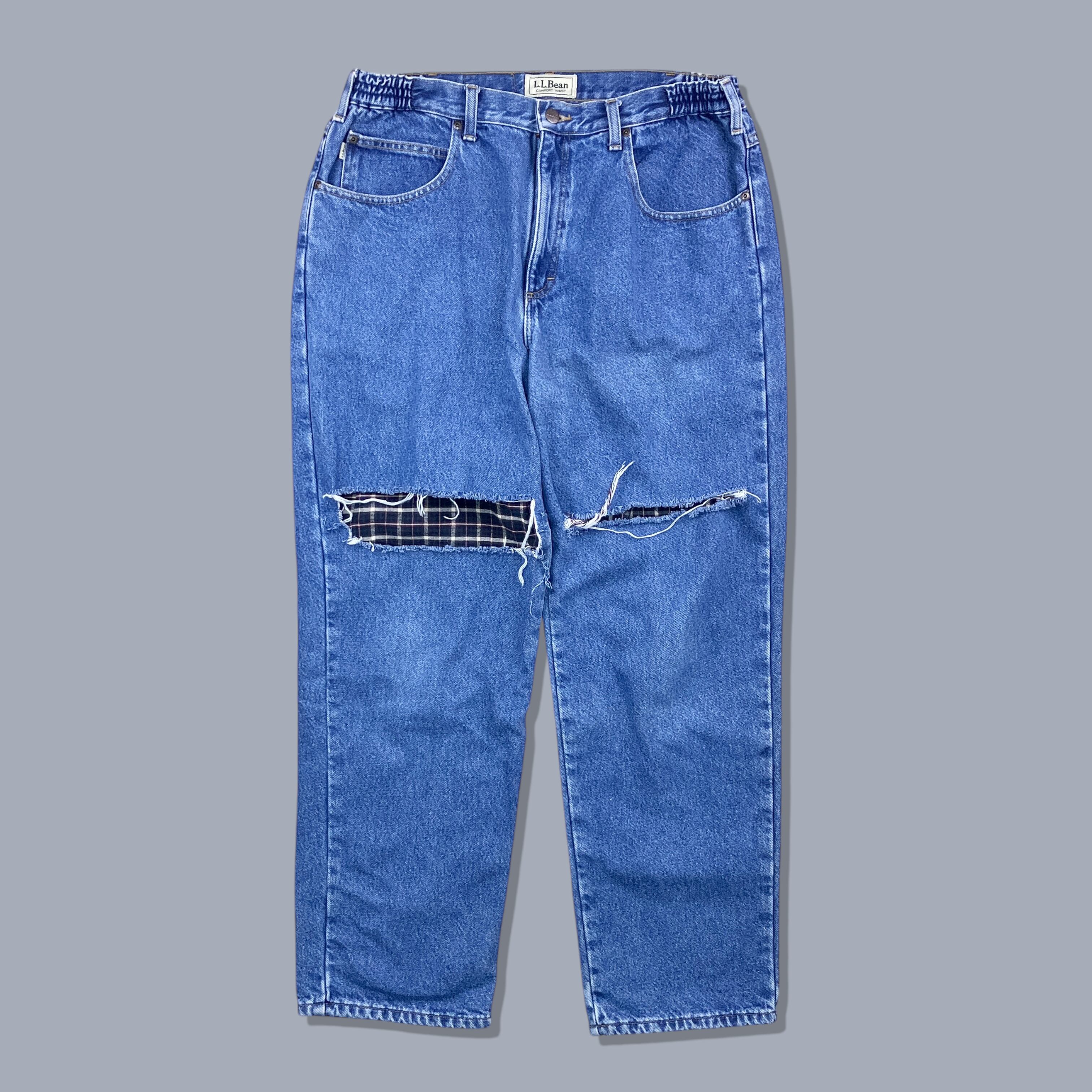 00s L.L.Bean COMFORT WAIST Flannel-Lined Custom Crashed Jeans