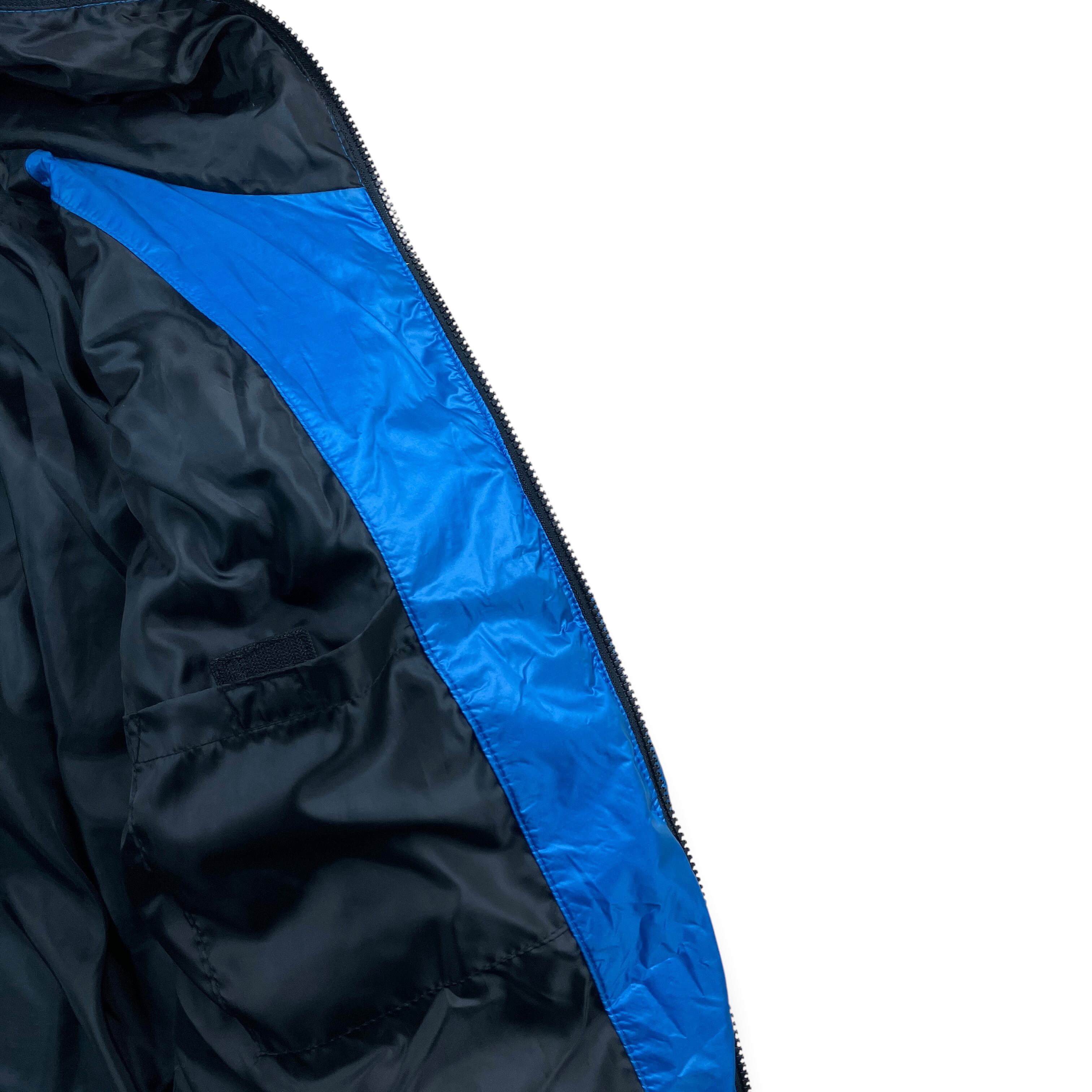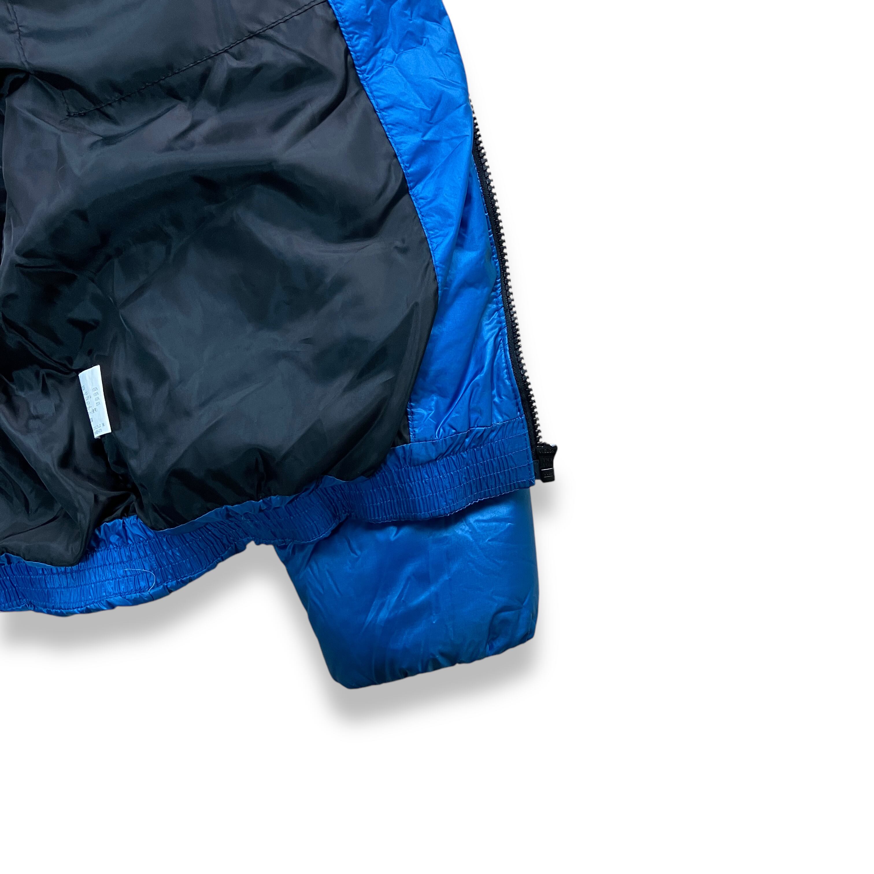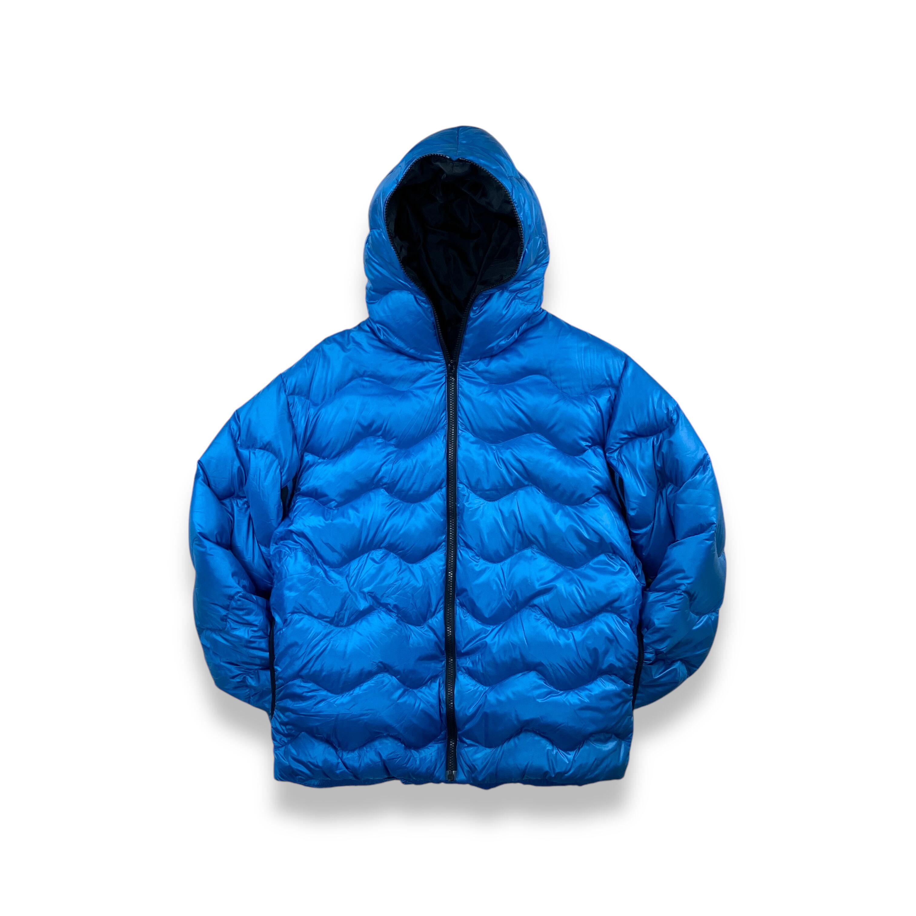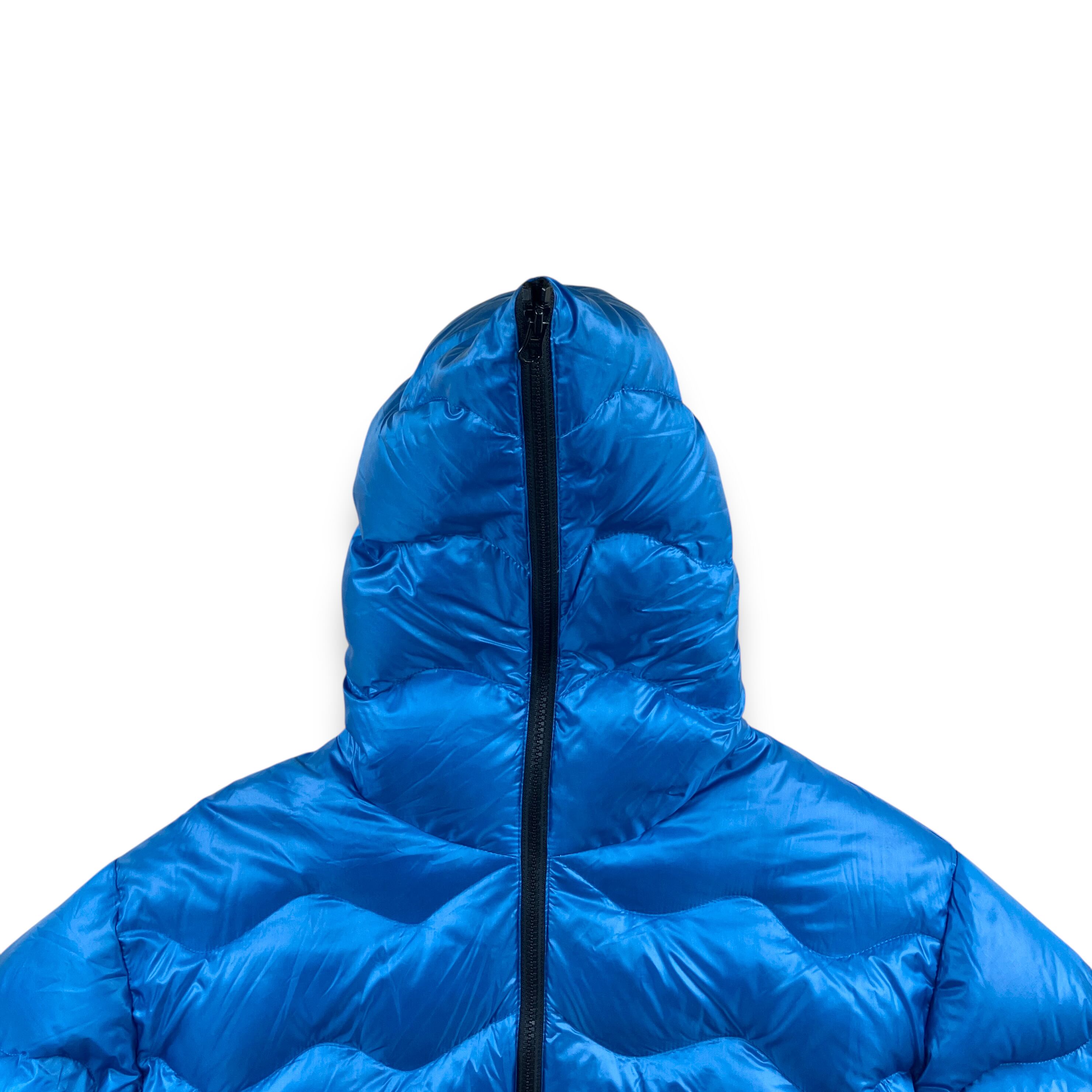 フルフェイス仕様、ウェーブキルティング、メタリックブルーという要素が揃った、00sらしいインパクトのあるダウンジャケットです。
