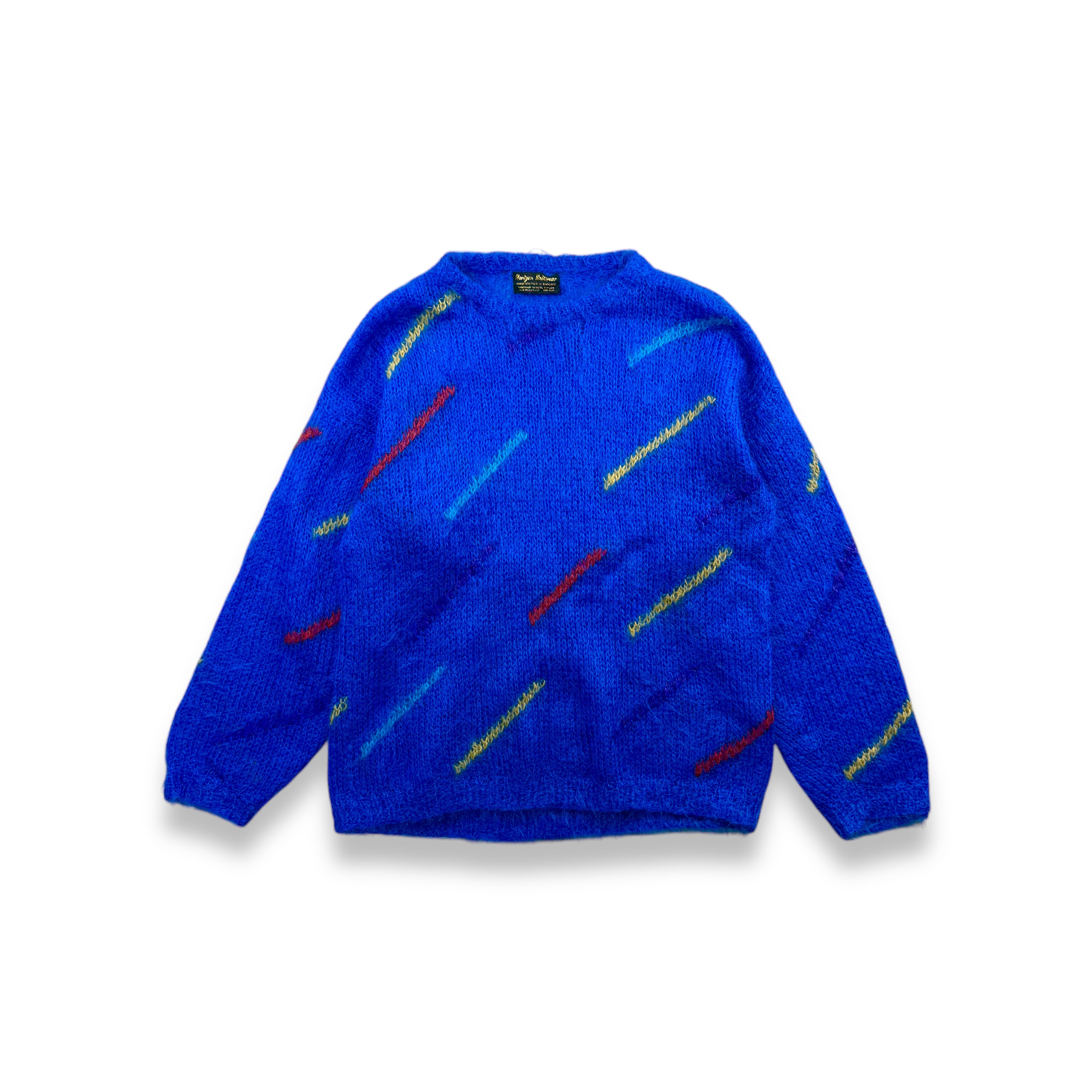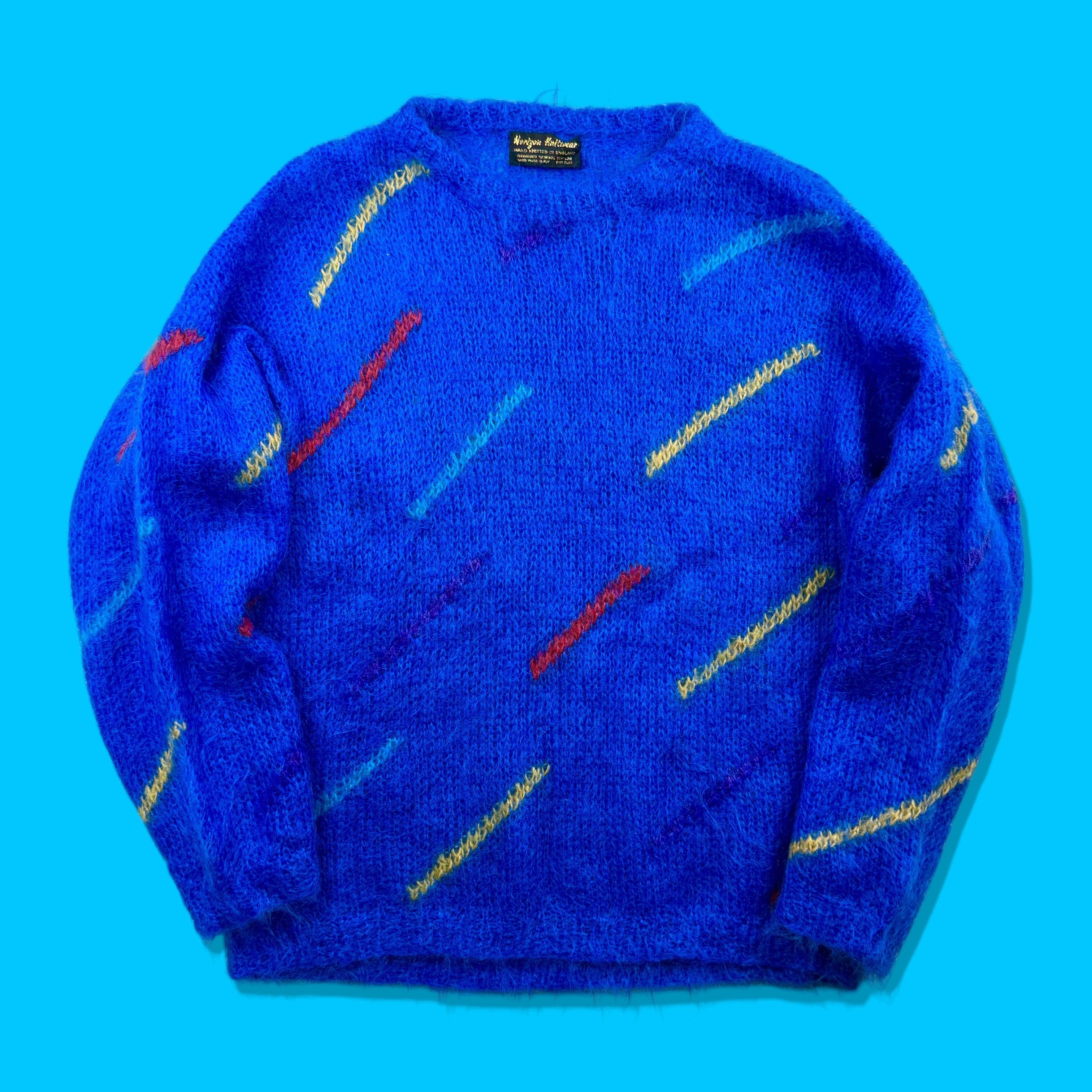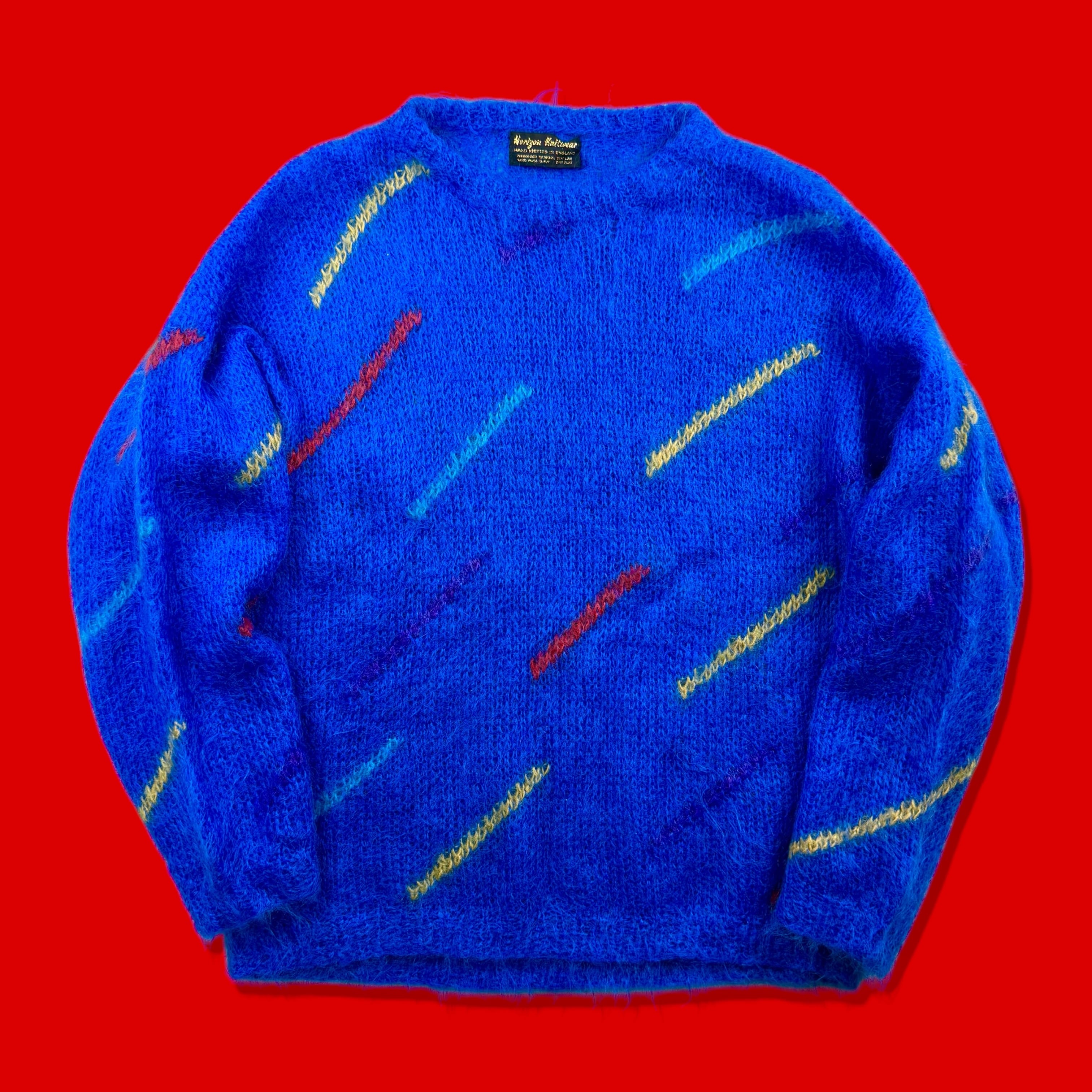 ハンドニットならではの質感と、ニューウェーブの自由な表現、そしてアート性を纏った希少なモヘアニットです。
