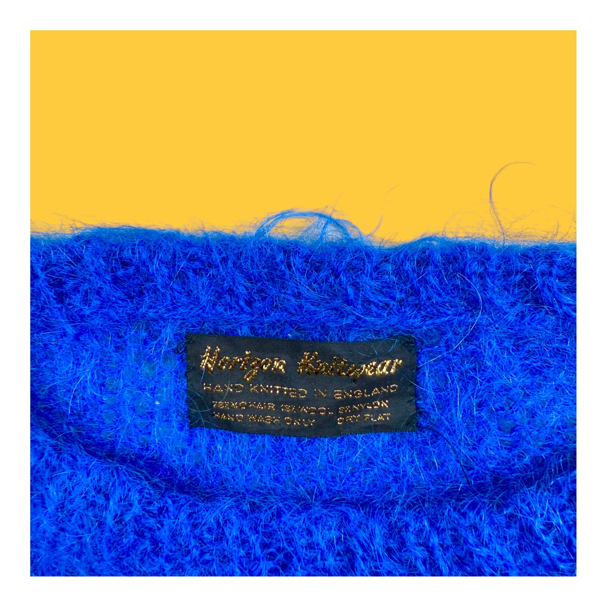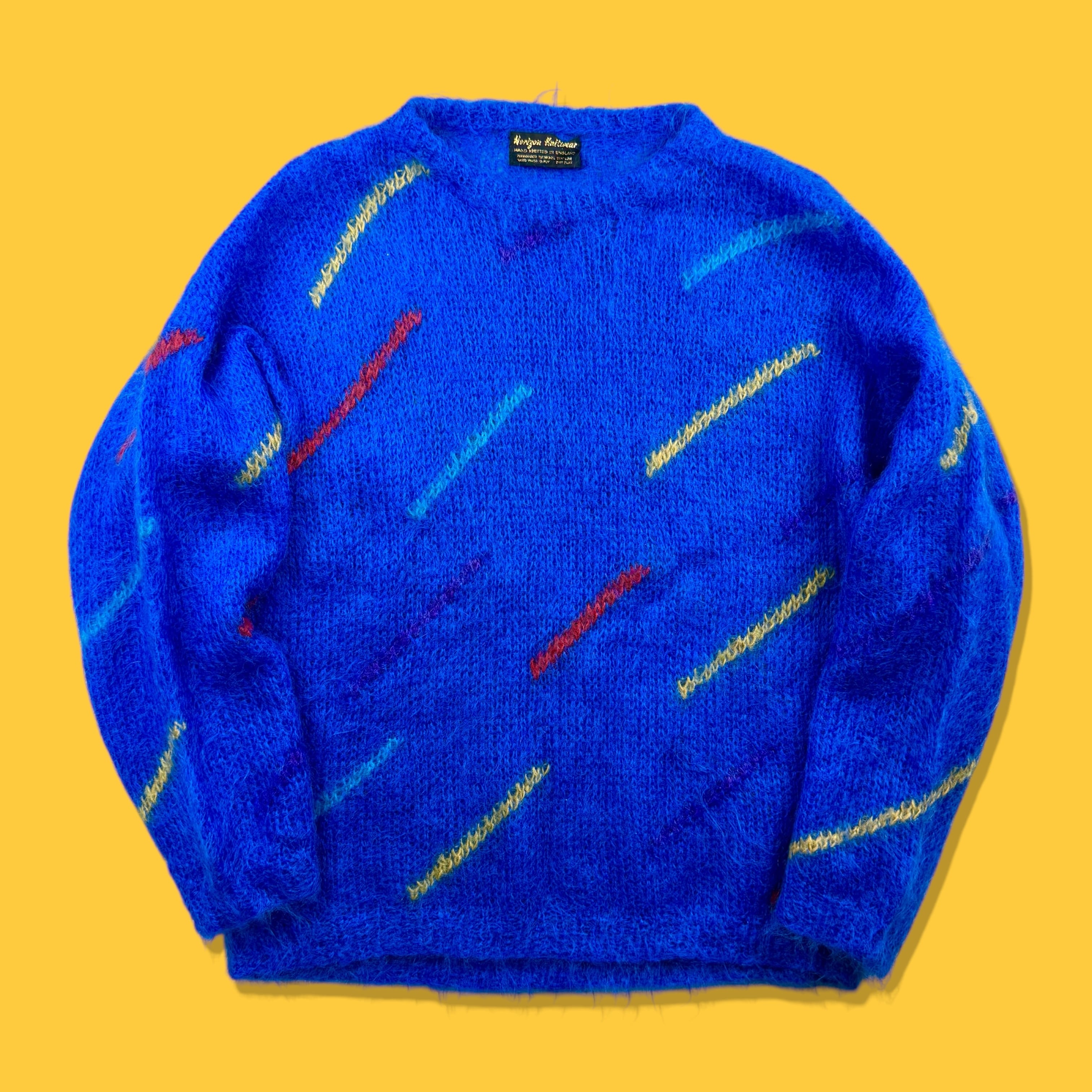 1980年代、イギリスのニットメーカーのホライゾン・ニットウェアによるハンドニットのモヘアセーター。英国製の上質な仕上がりです。
