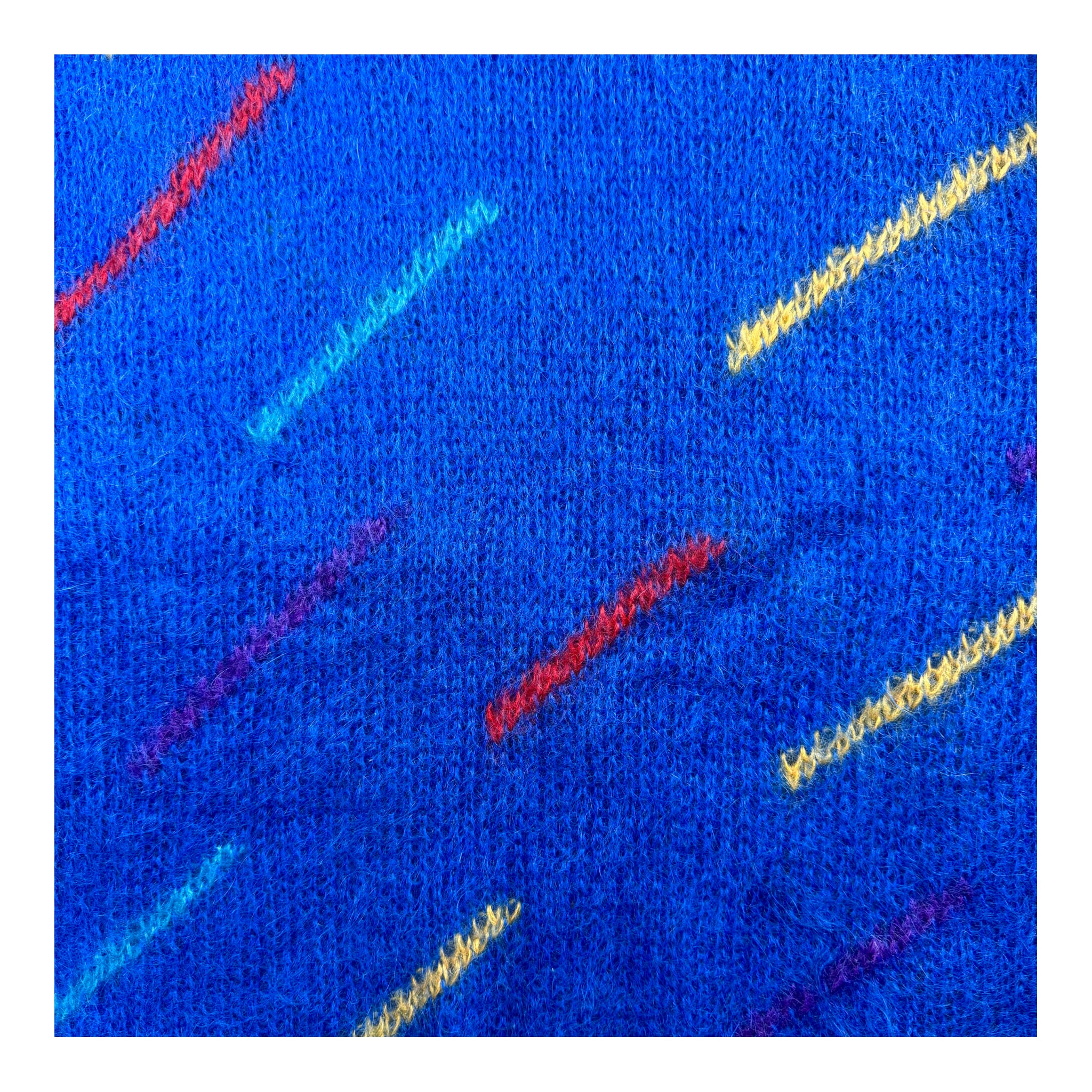 さらに、ふわっとしたモヘアの質感と鮮烈な色彩のコントラストは、当時のUKファッションにおける