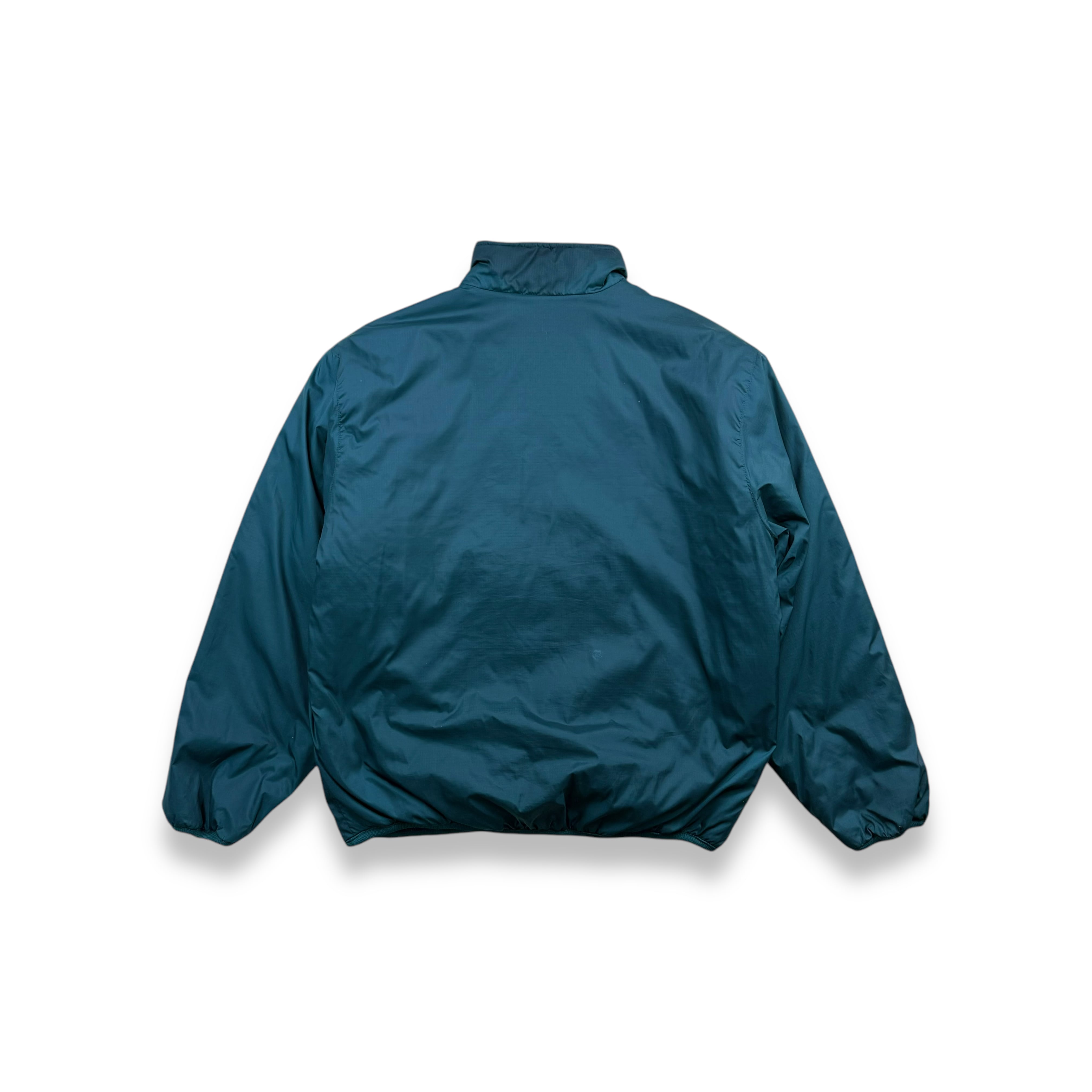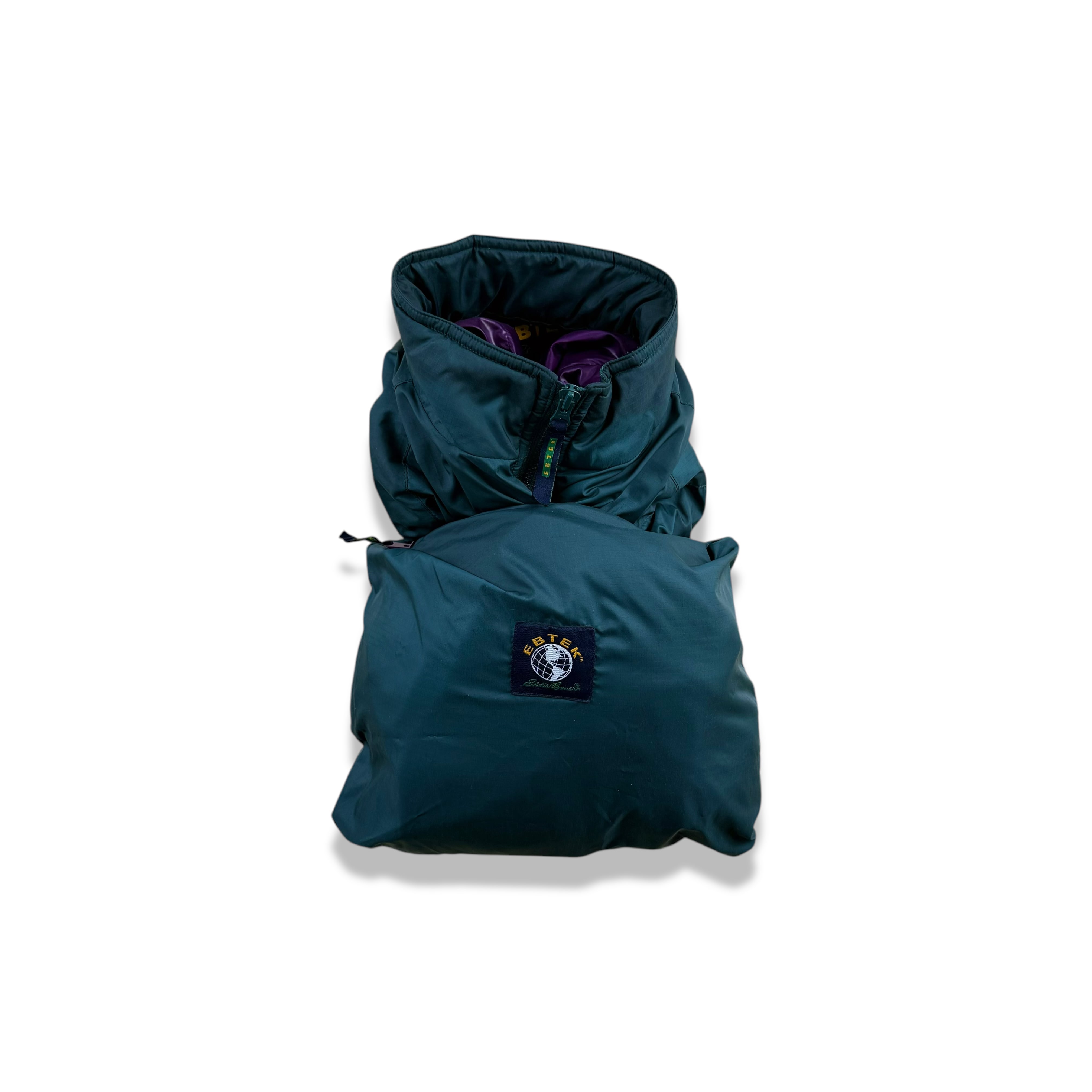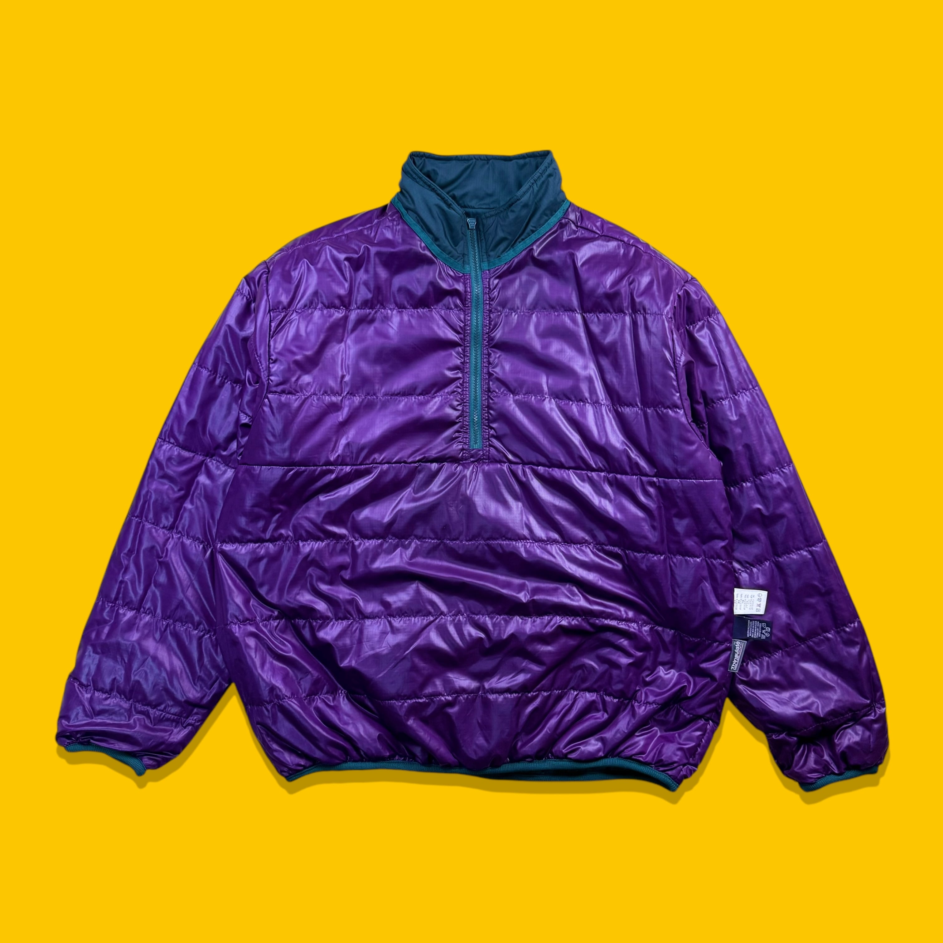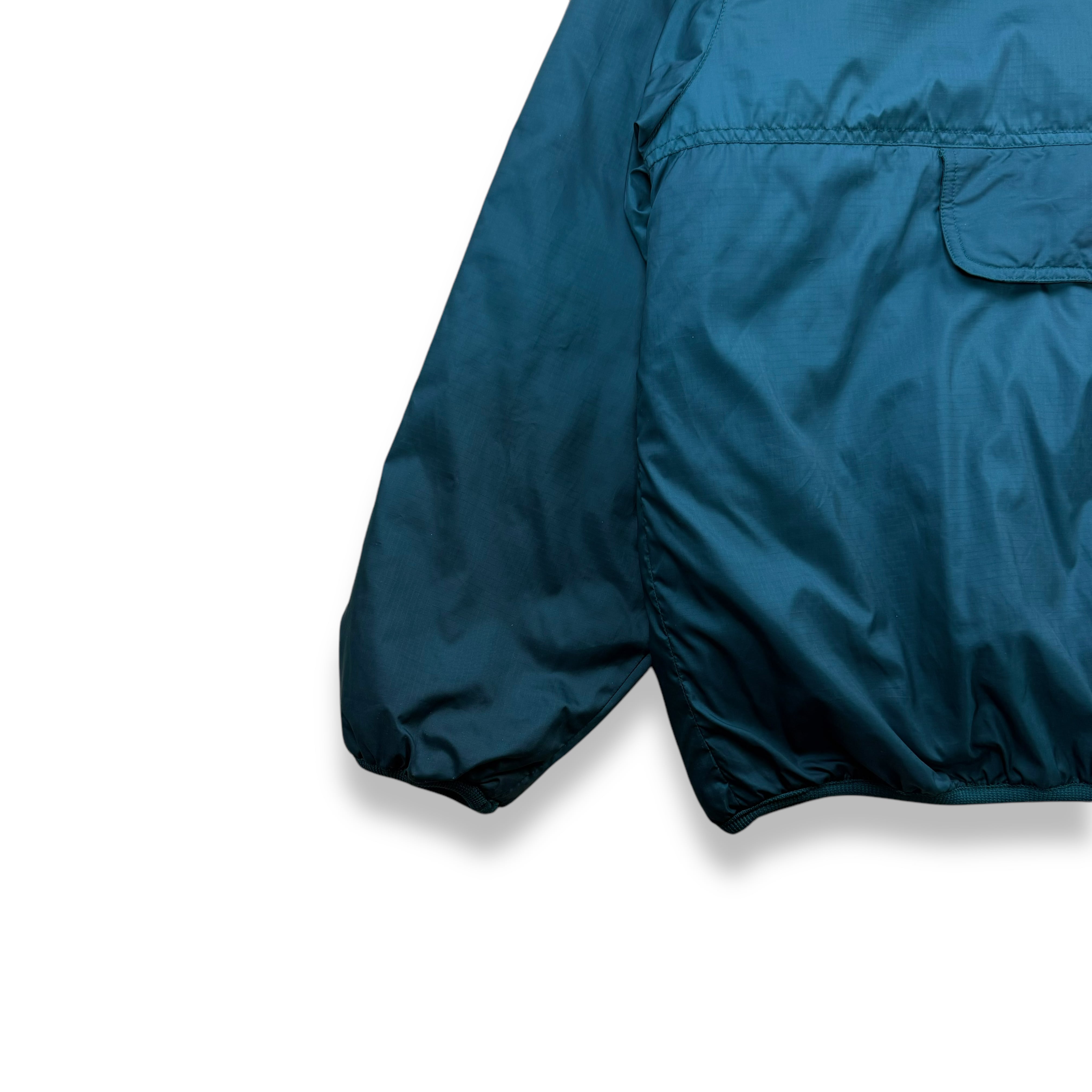 90年代 Eddie Bauer のテクニカルライン EBTEK(Eddie Bauer Technology) より登場した、ハーフジップ仕様の中綿入りプルオーバージャケット。ターコイズグリーンのボディに、ライニングのパープルが差し色として効く、EBTEKらしい独特の配色が魅力です。