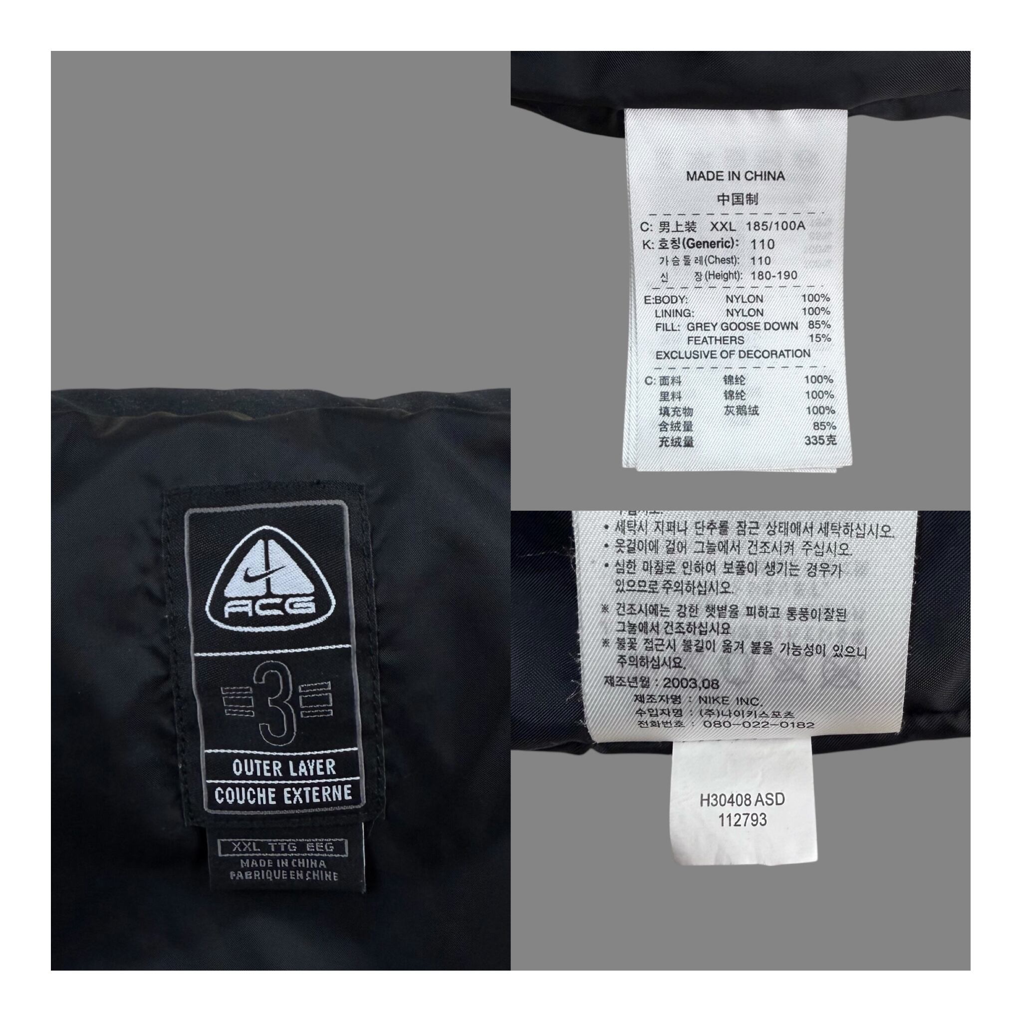 2003年製、ナイキACGのフーデッドグースダウンジャケット。