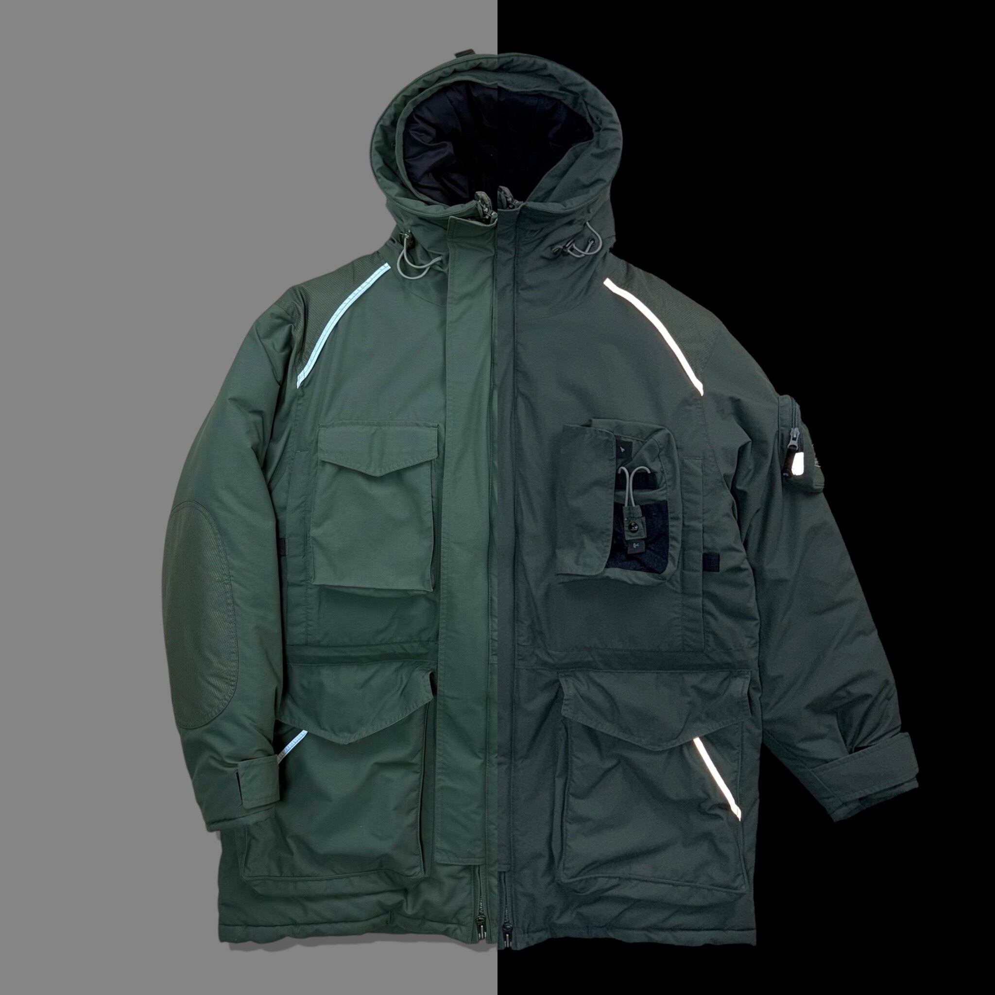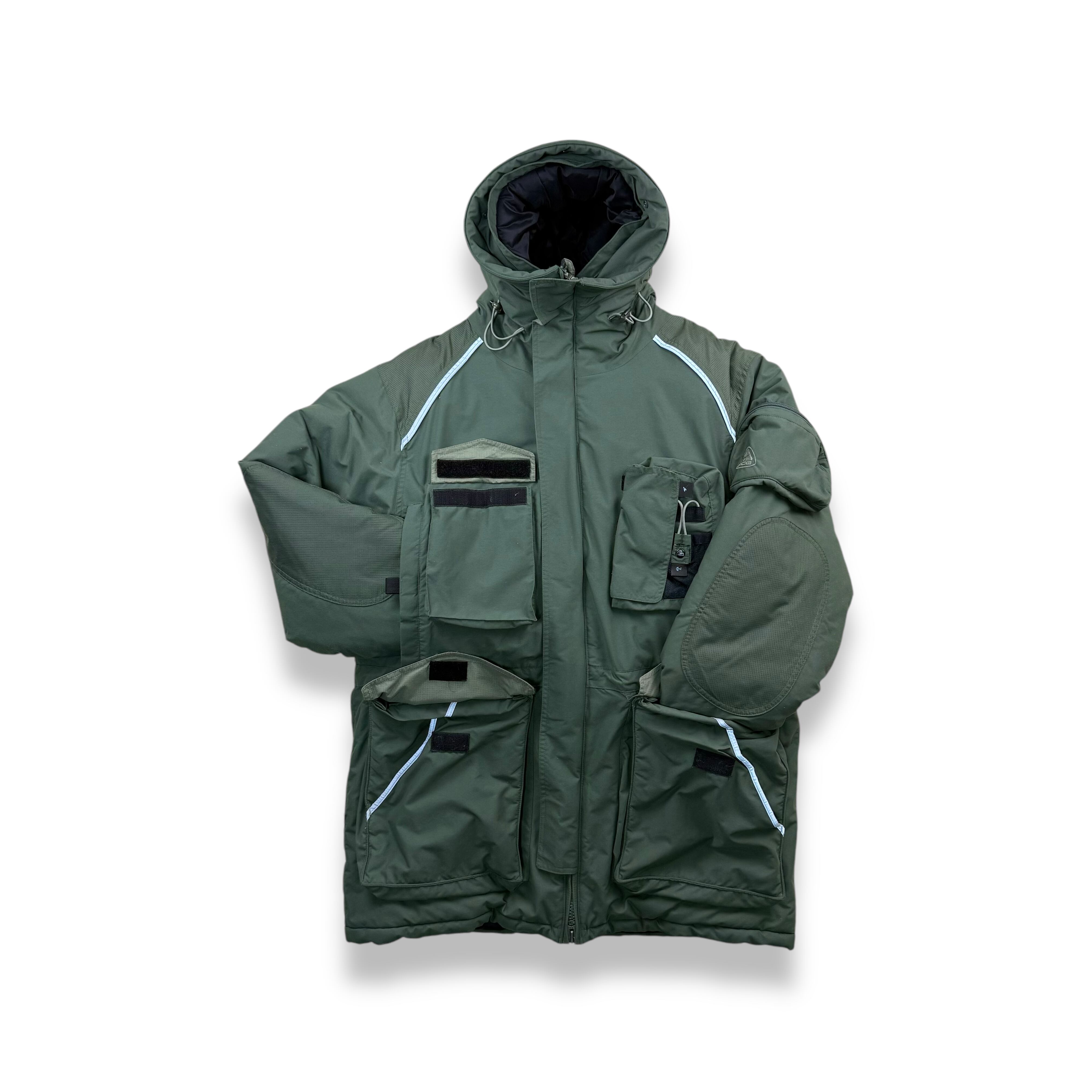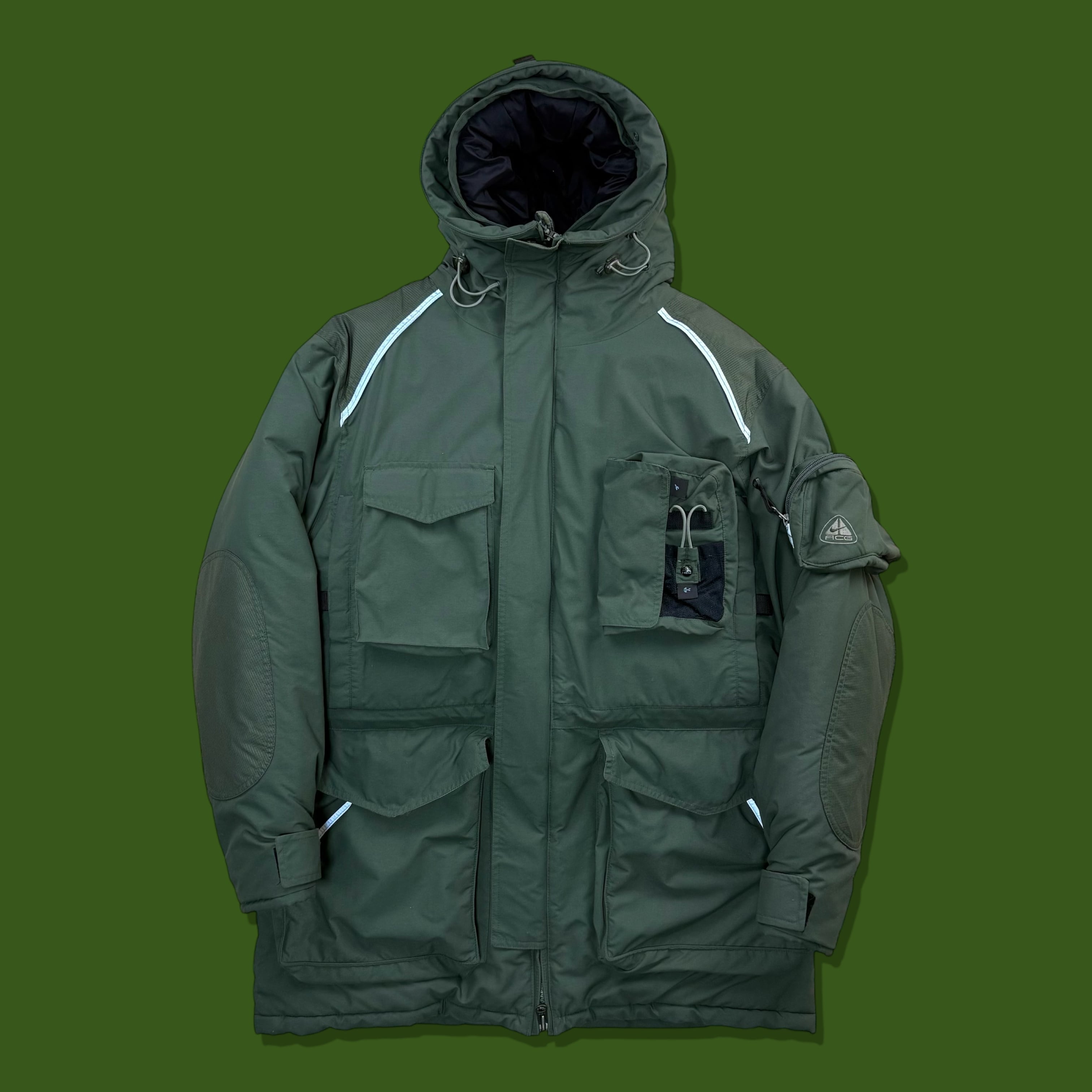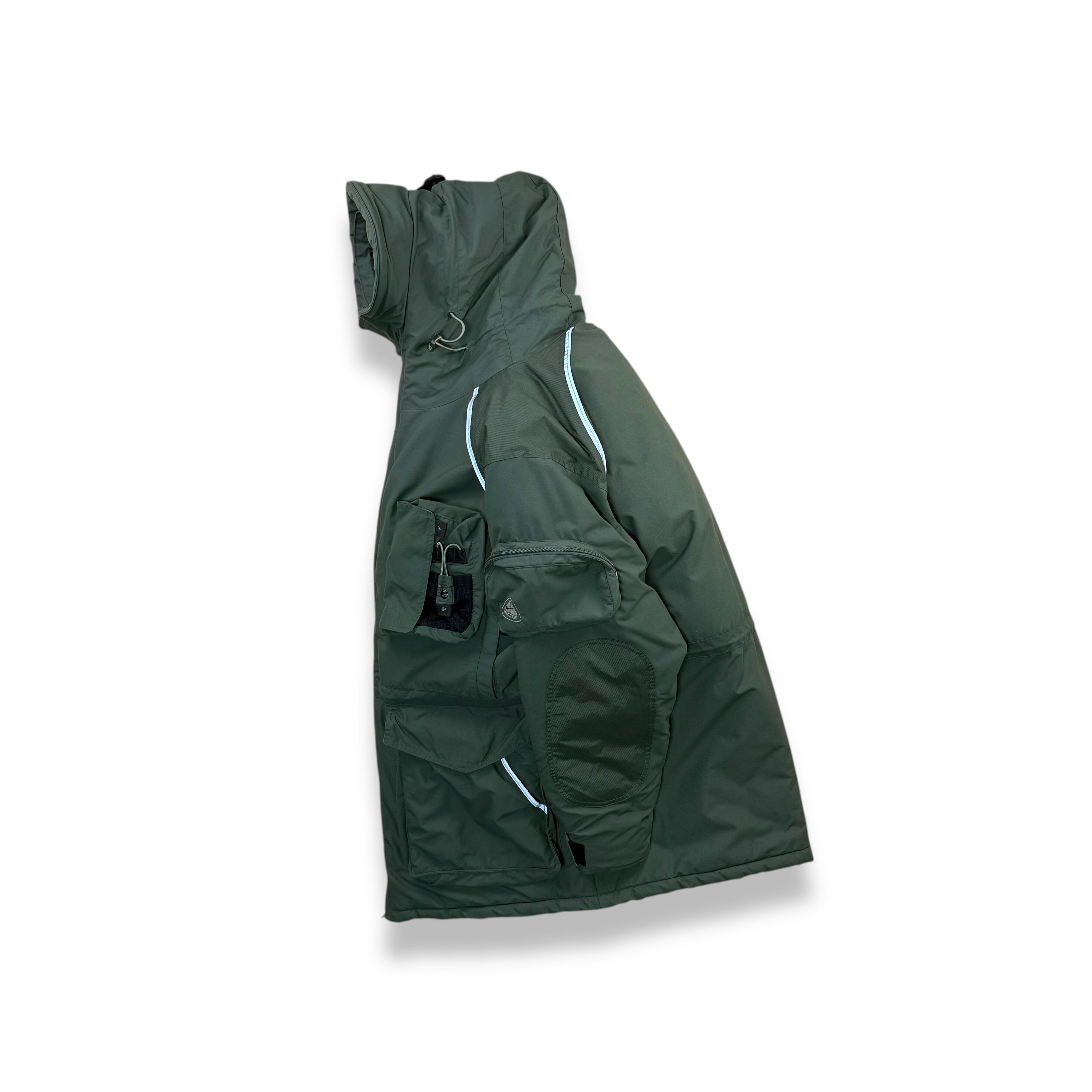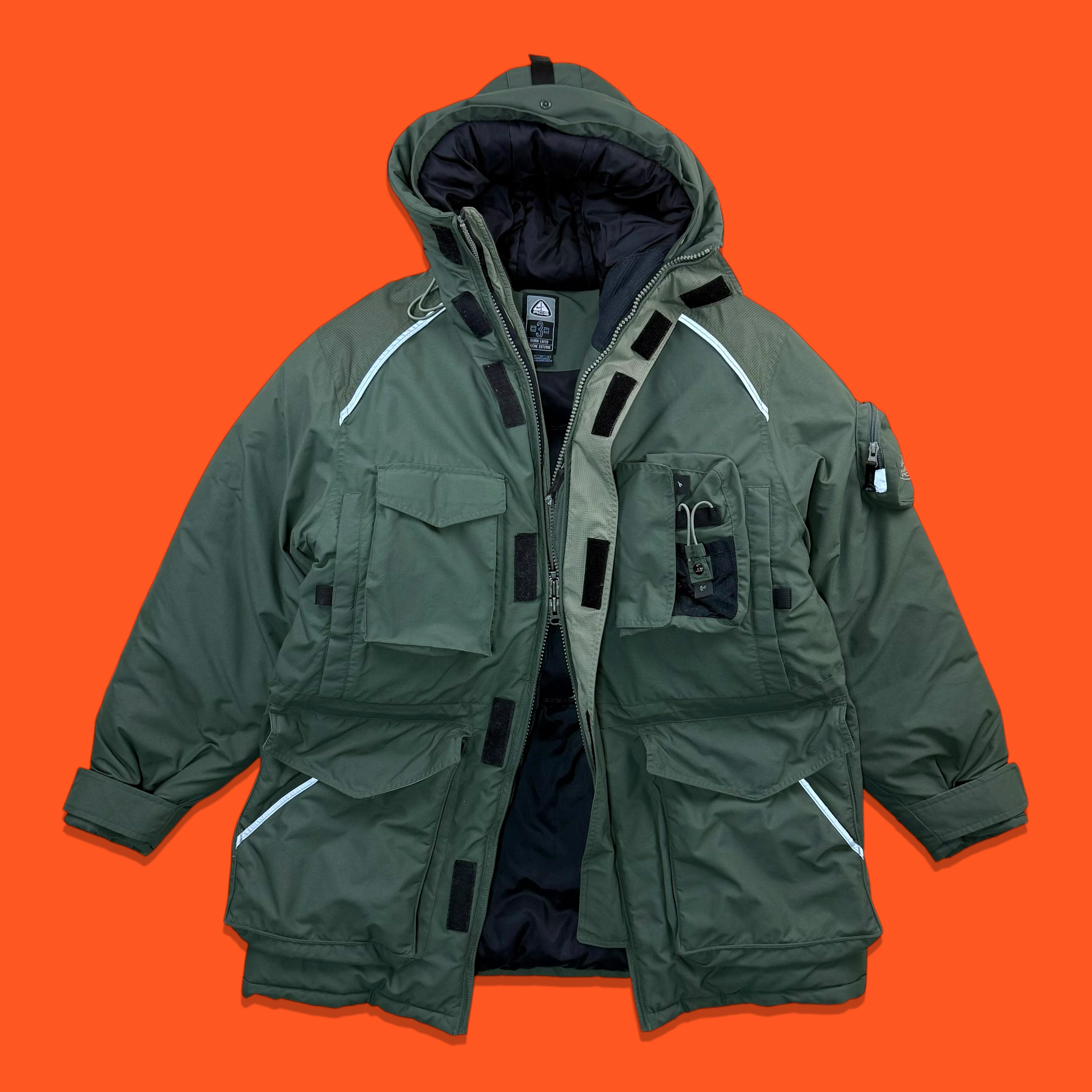2001年製、ナイキACGによるヘビーアウター。カーキを基調に、肩・袖・前身頃へ配置されたリフレクターパイピングがアクセントとなる、ACGらしいギア感あふれる一着です。