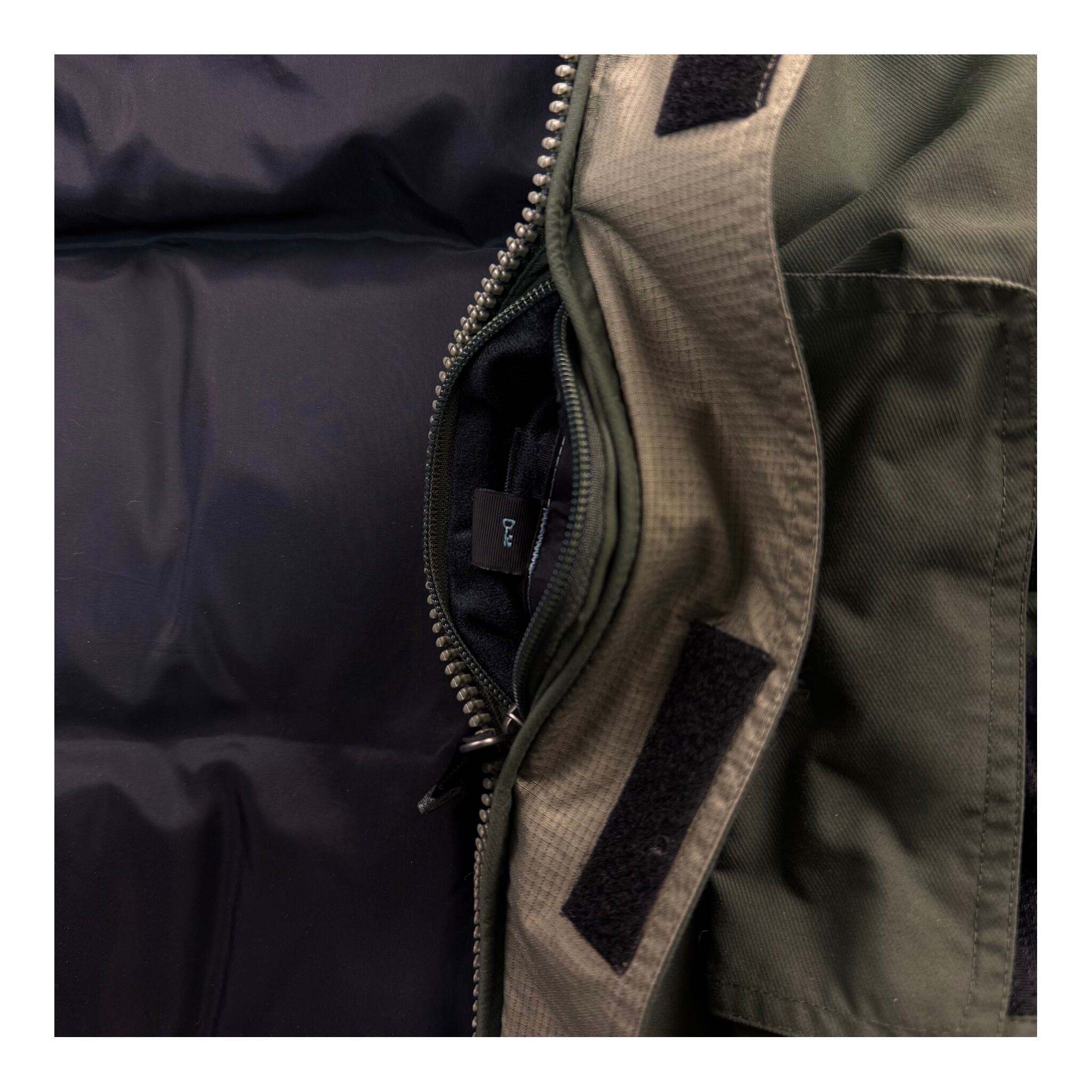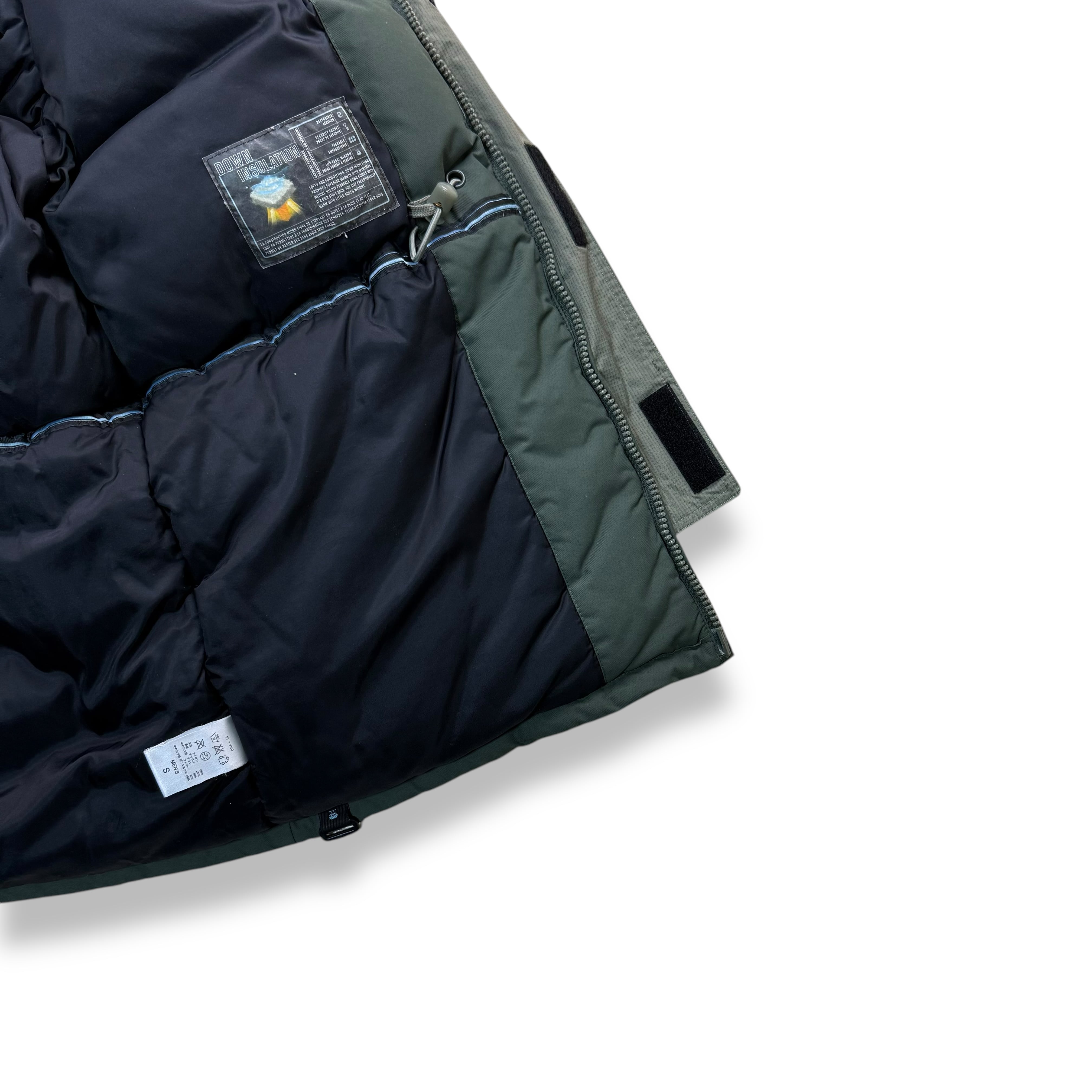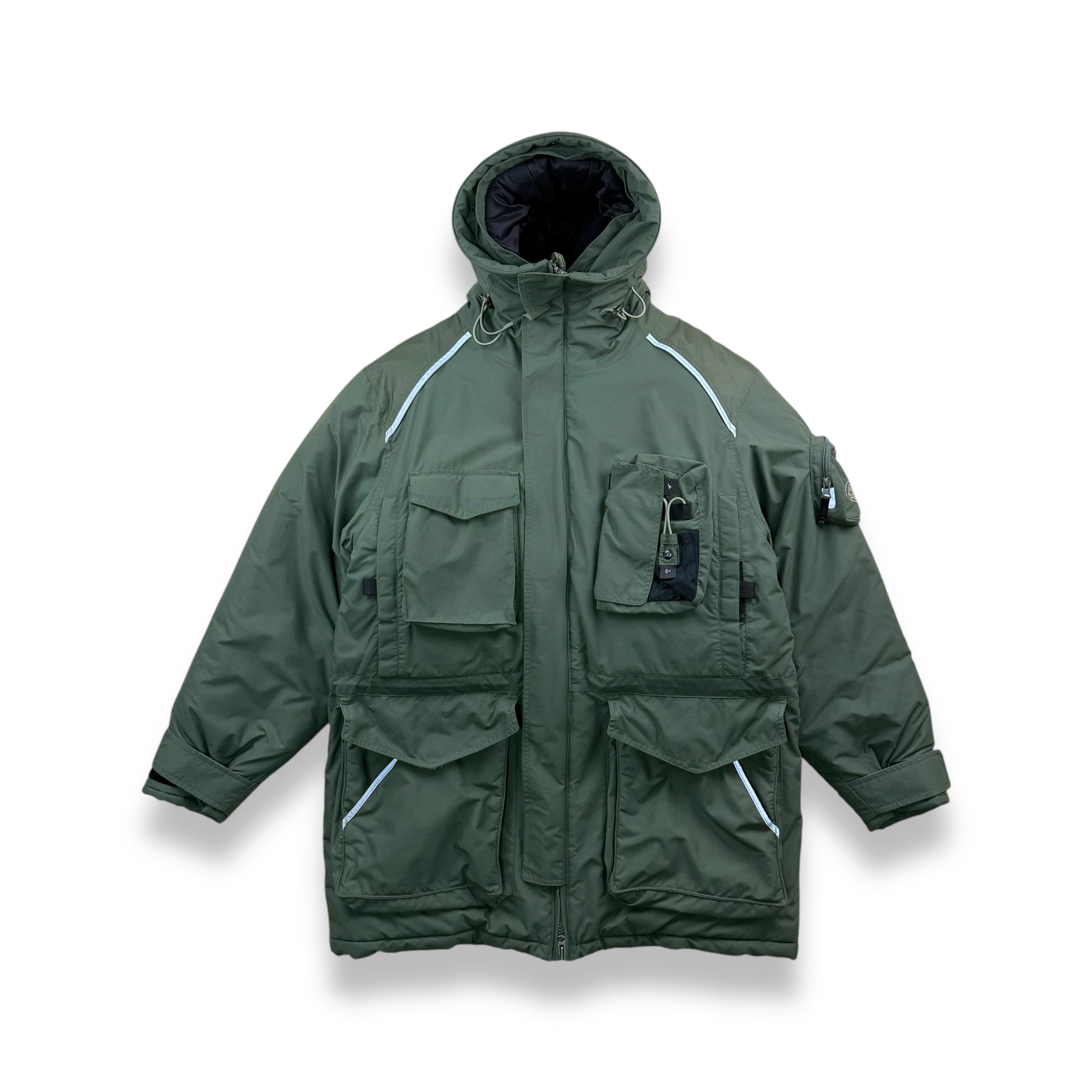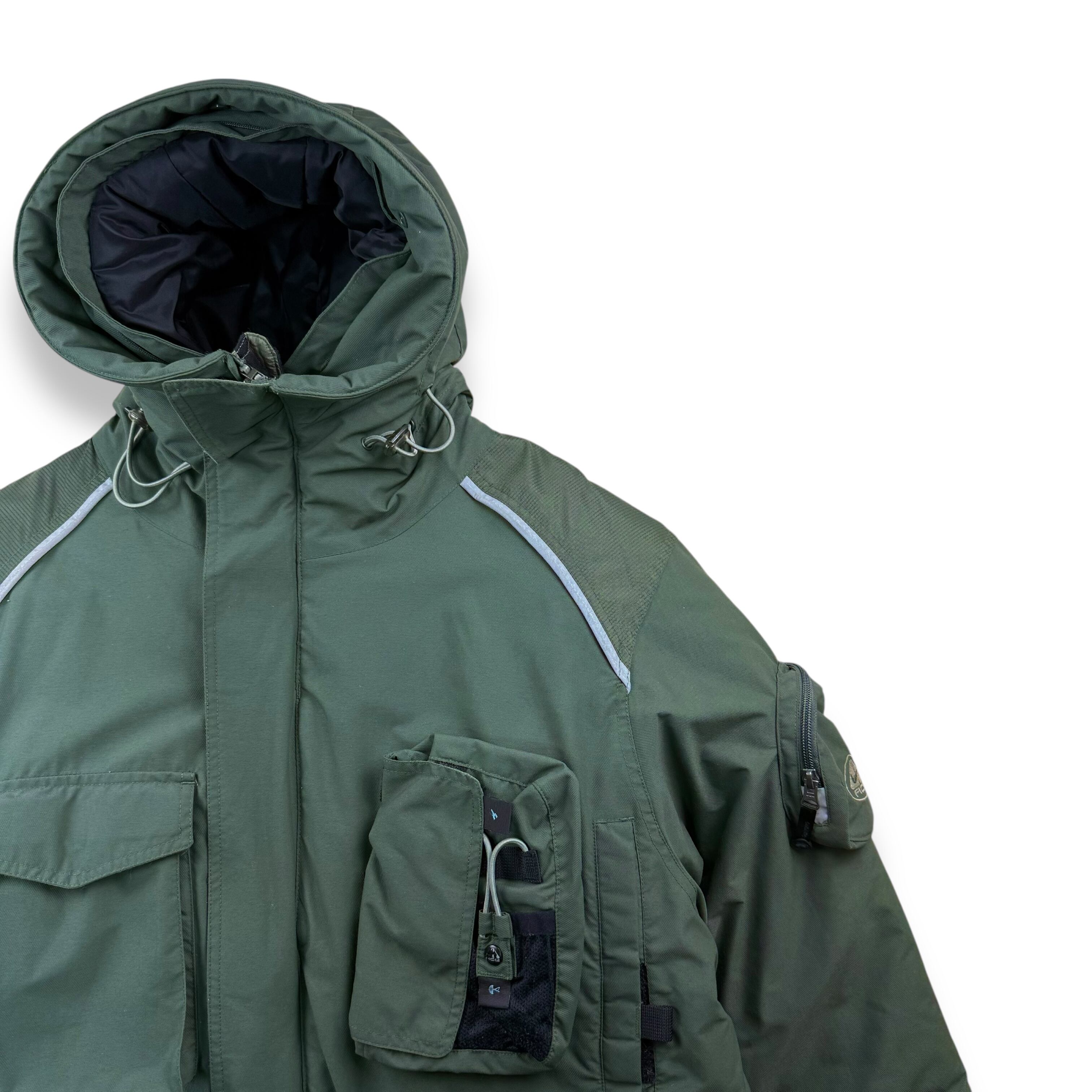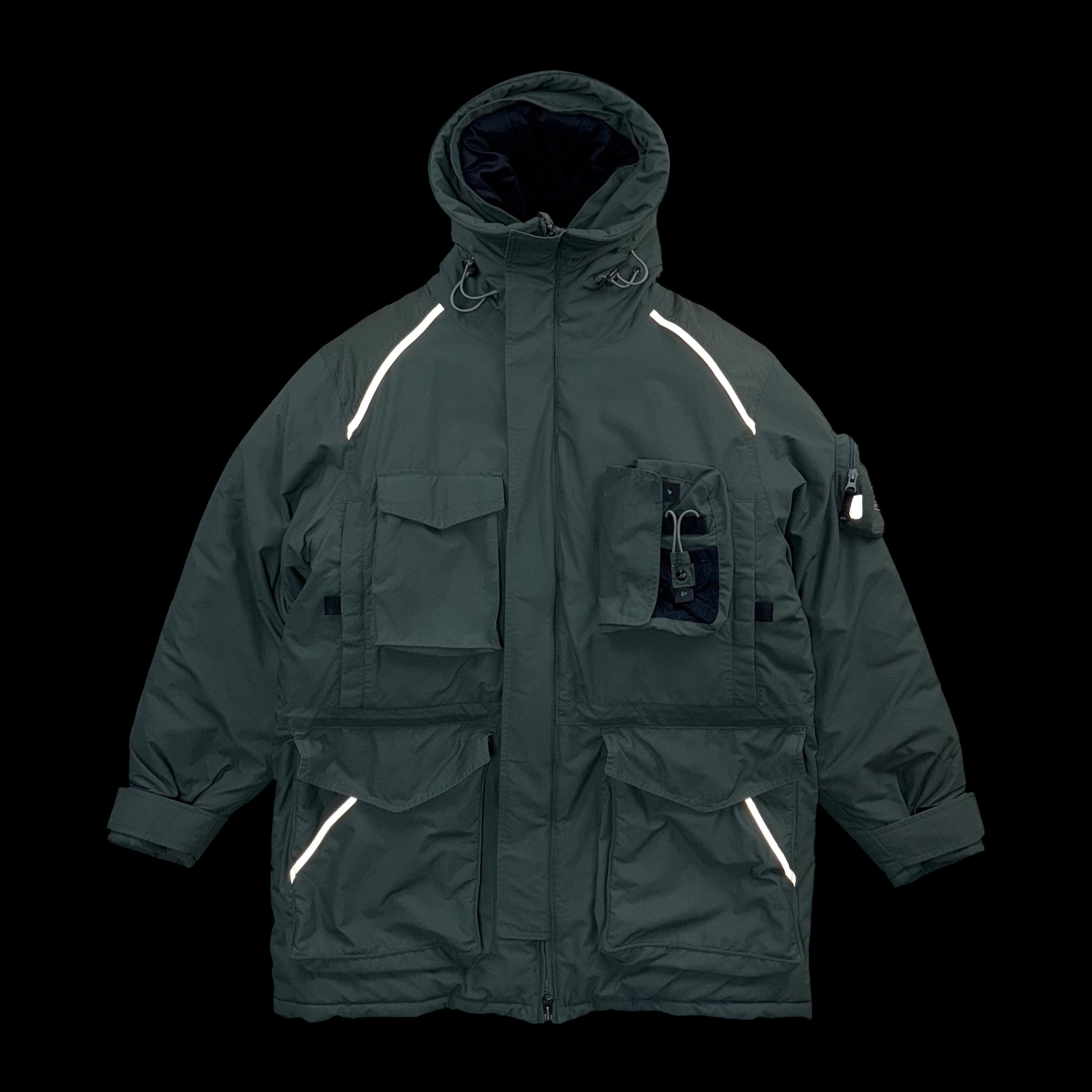 2001年製、ナイキACGによるヘビーアウター。カーキを基調に、肩・袖・前身頃へ配置されたリフレクターパイピングがアクセントとなる、ACGらしいギア感あふれる一着です。