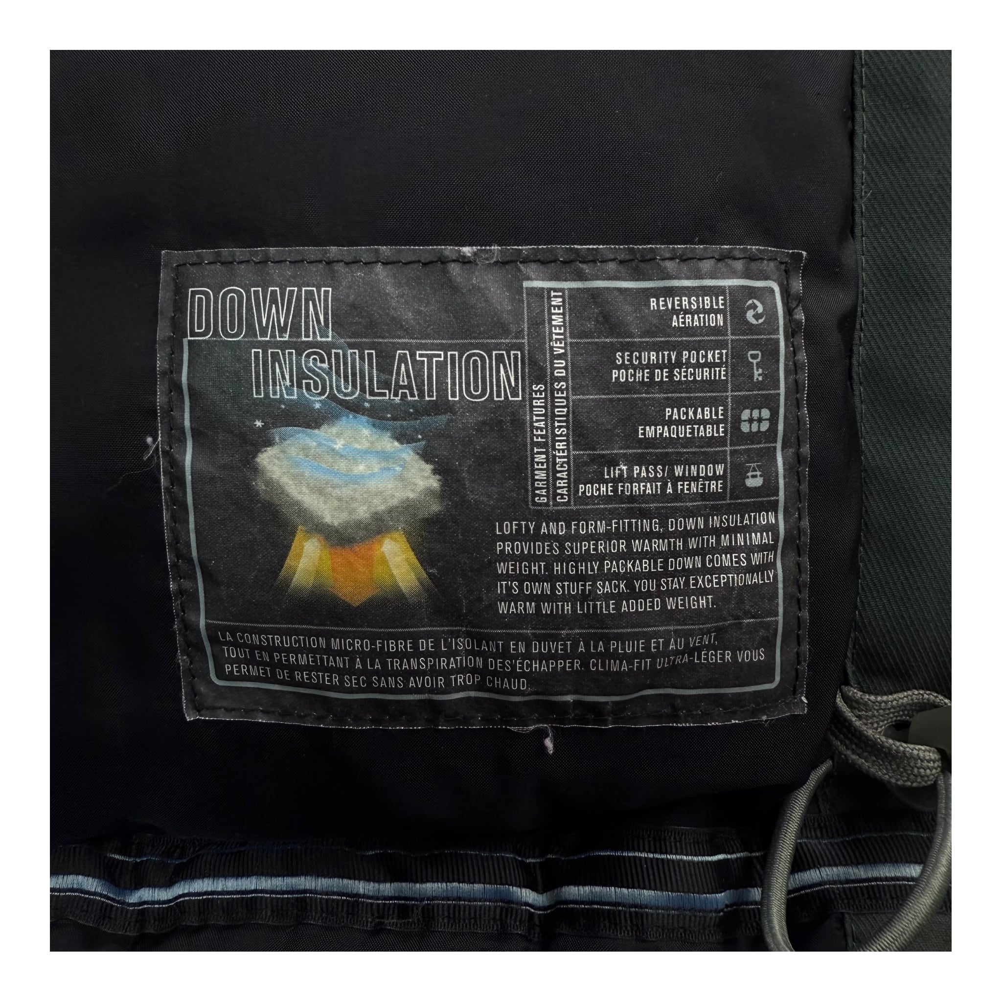 フロントはダブルジップにベルクロフラップを重ねた防風構造で、悪天候への耐性もしっかり確保。袖にはエルボーパッチが入り、摩耗しやすい部分の耐久性を高めたつくりです。フードと裾にはドローコードが備わり、フィット感やシルエットを調整できます。背面は中綿量がしっかり入っているため立体的で、全体のボリューム感を強調するシルエットになっています。