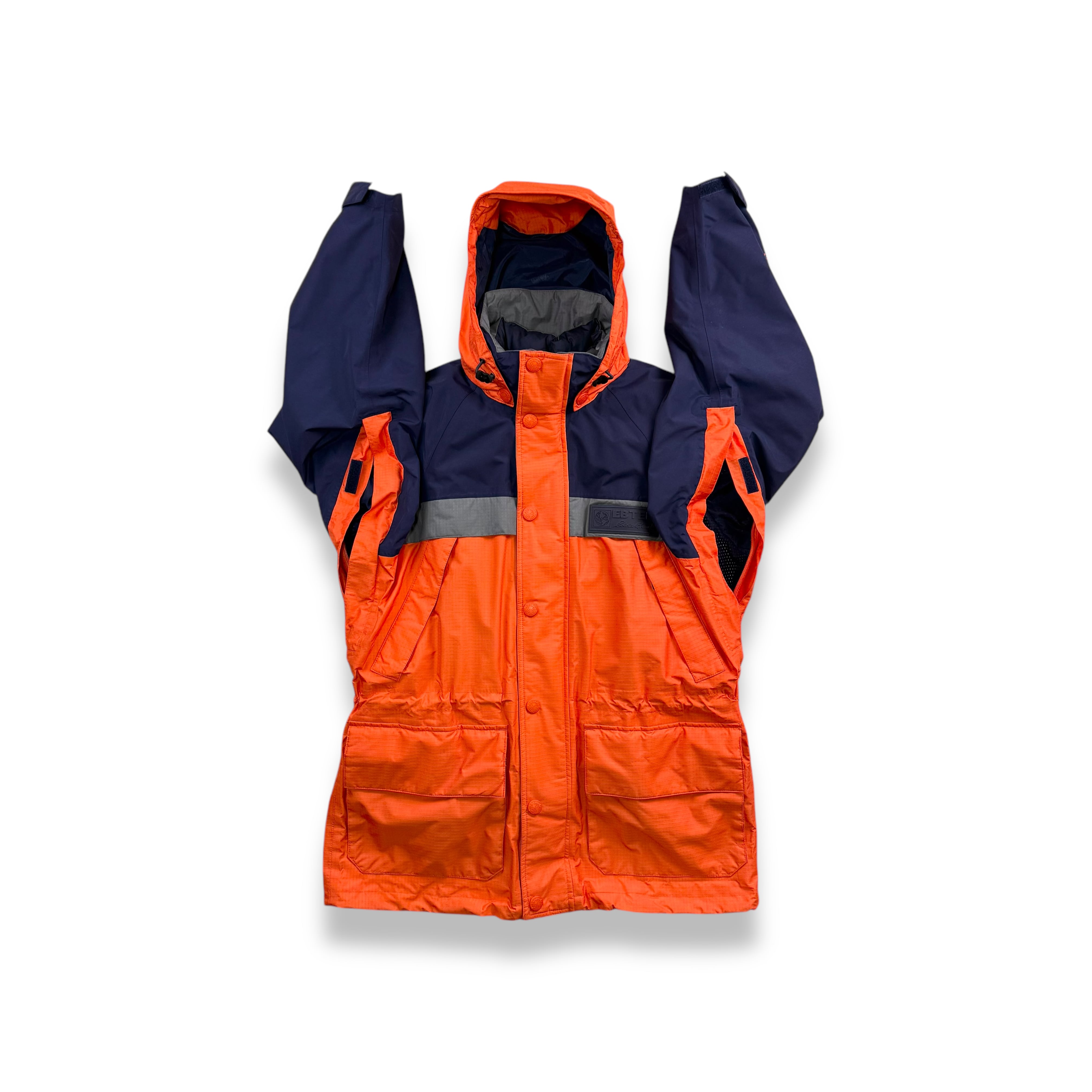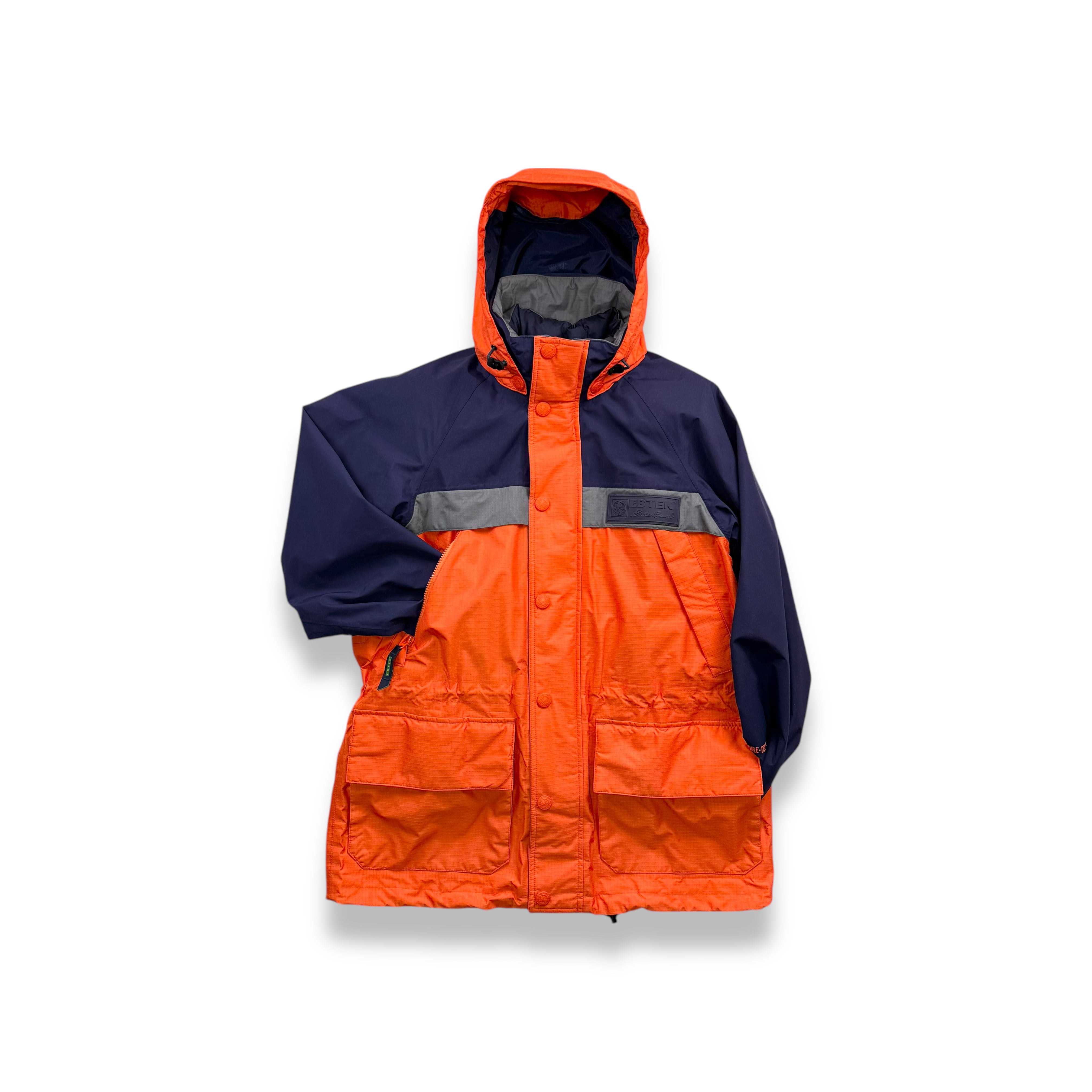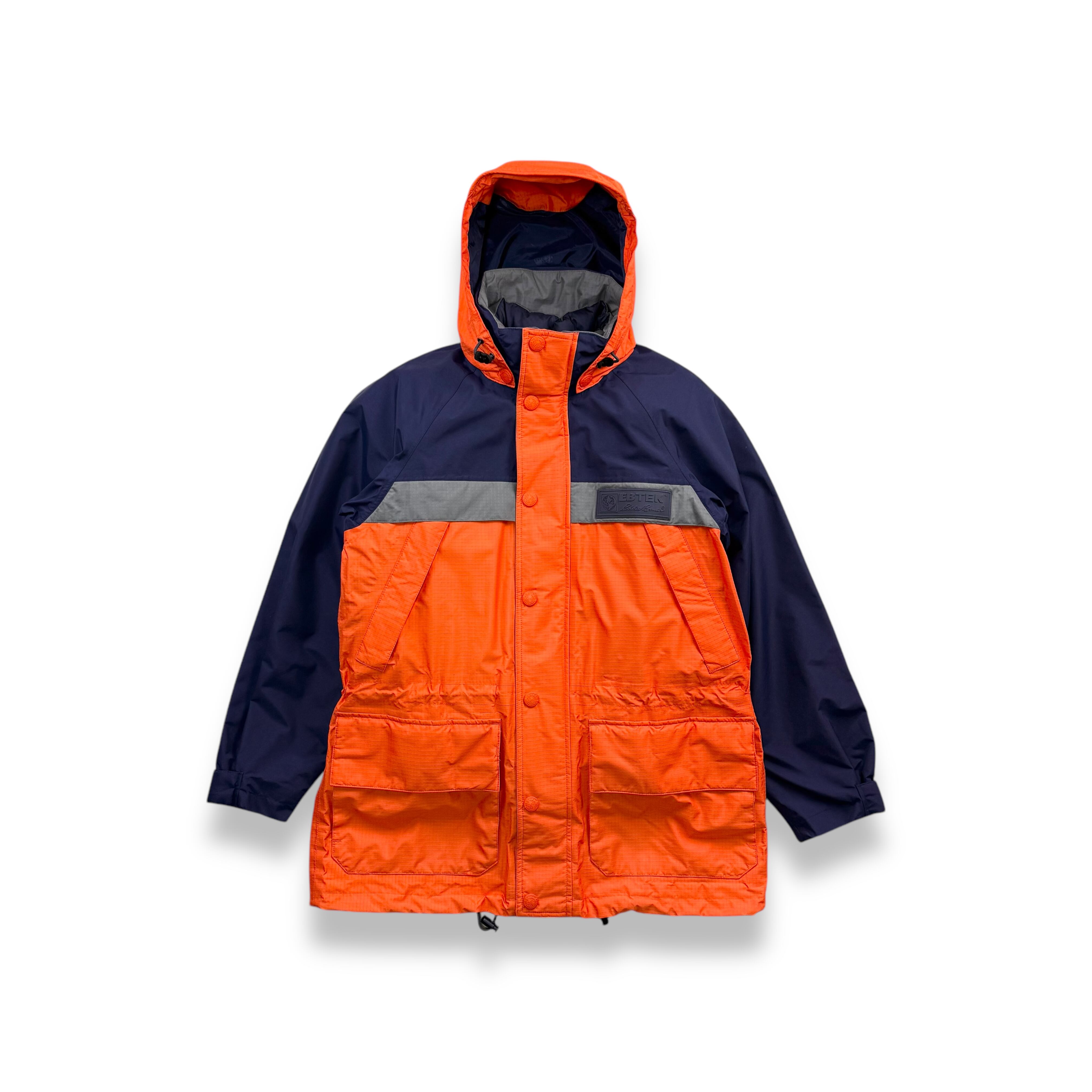 アイテムによってはGORE-TEX®や高機能中綿素材 を採用したモデルも存在し、都市生活とアウトドアの両方を想定したテック系アウトドアウェアという位置づけでした。ただし、EBTEKのすべてが極寒地仕様や完全防水ではなく、用途に応じたさまざまなスペックの製品が含まれていました。
