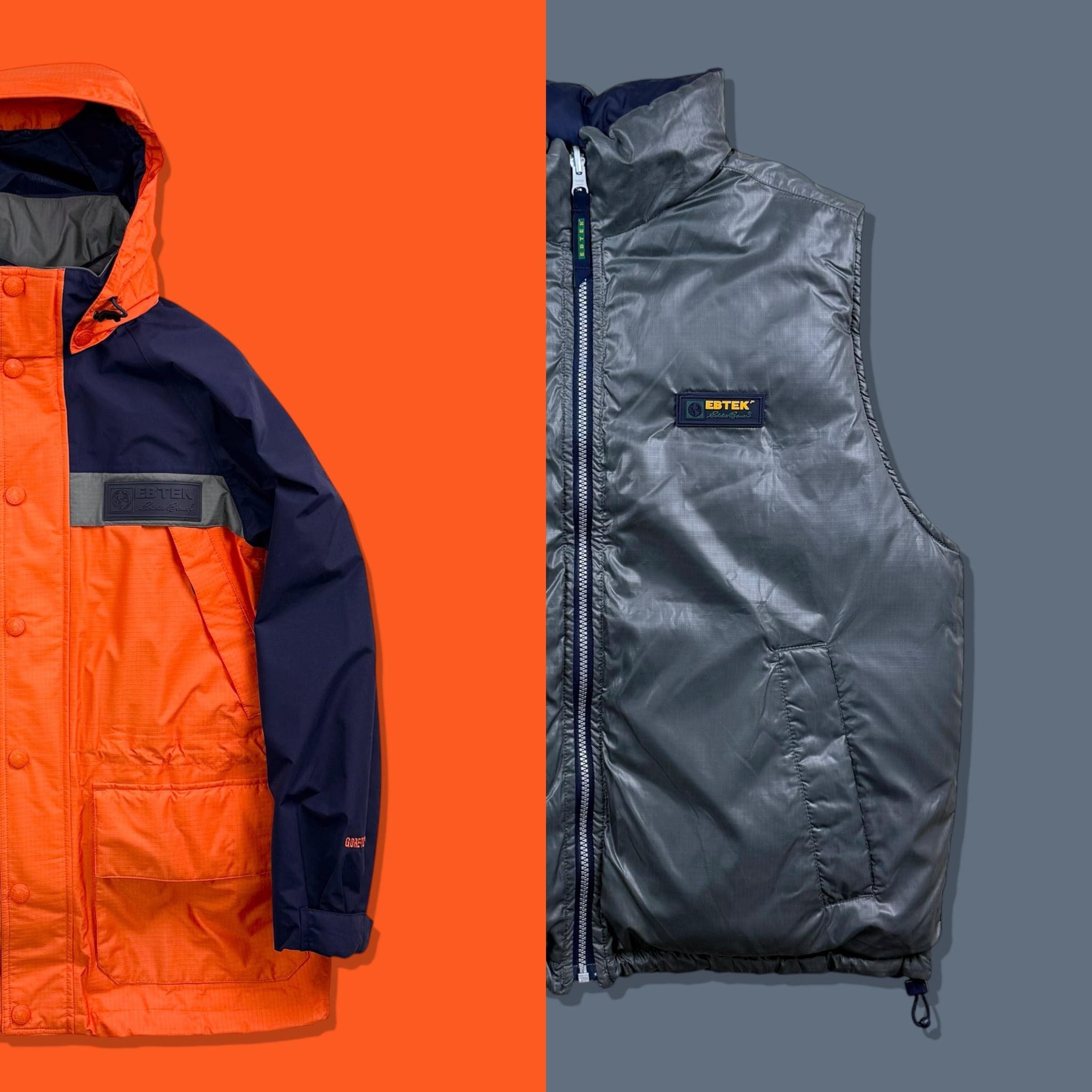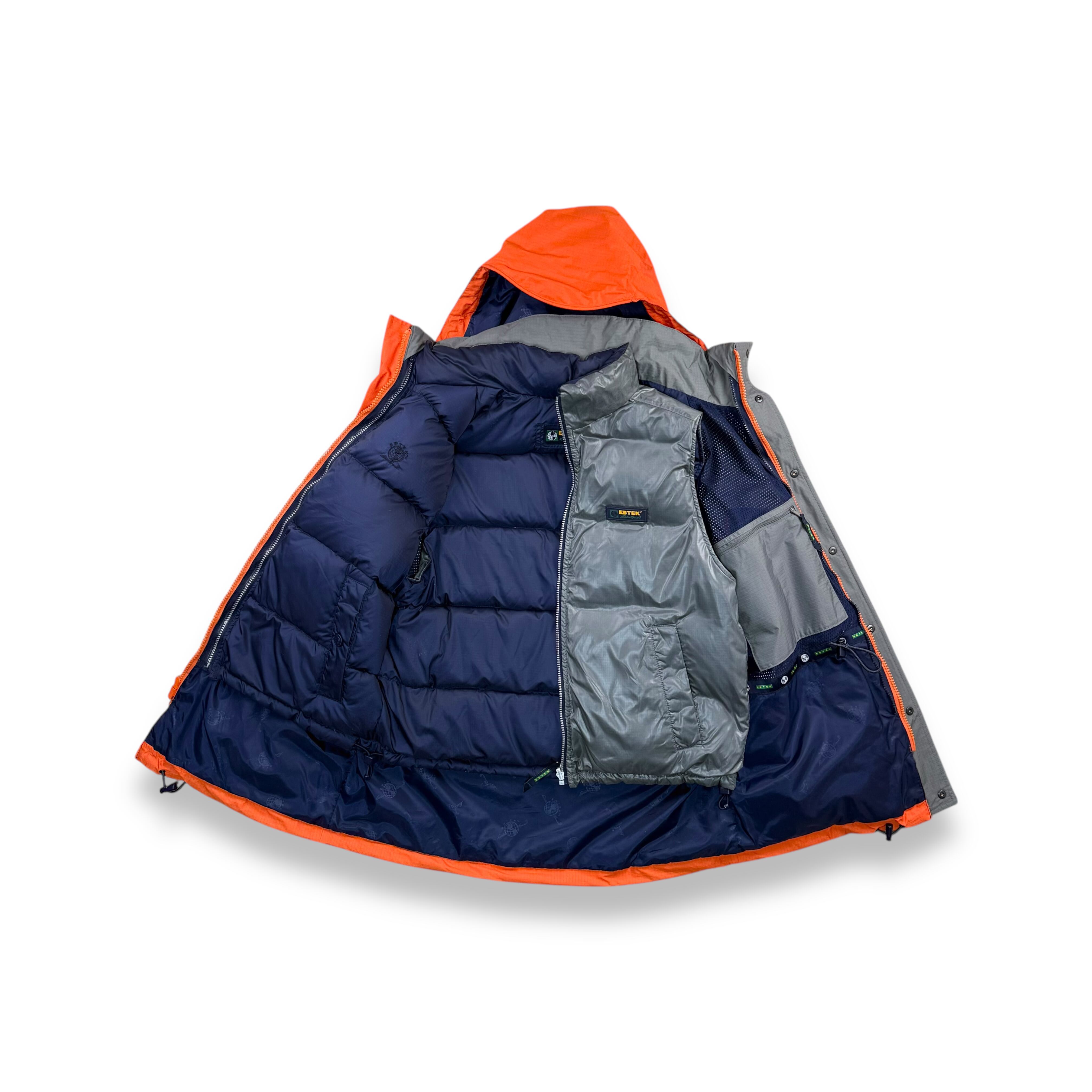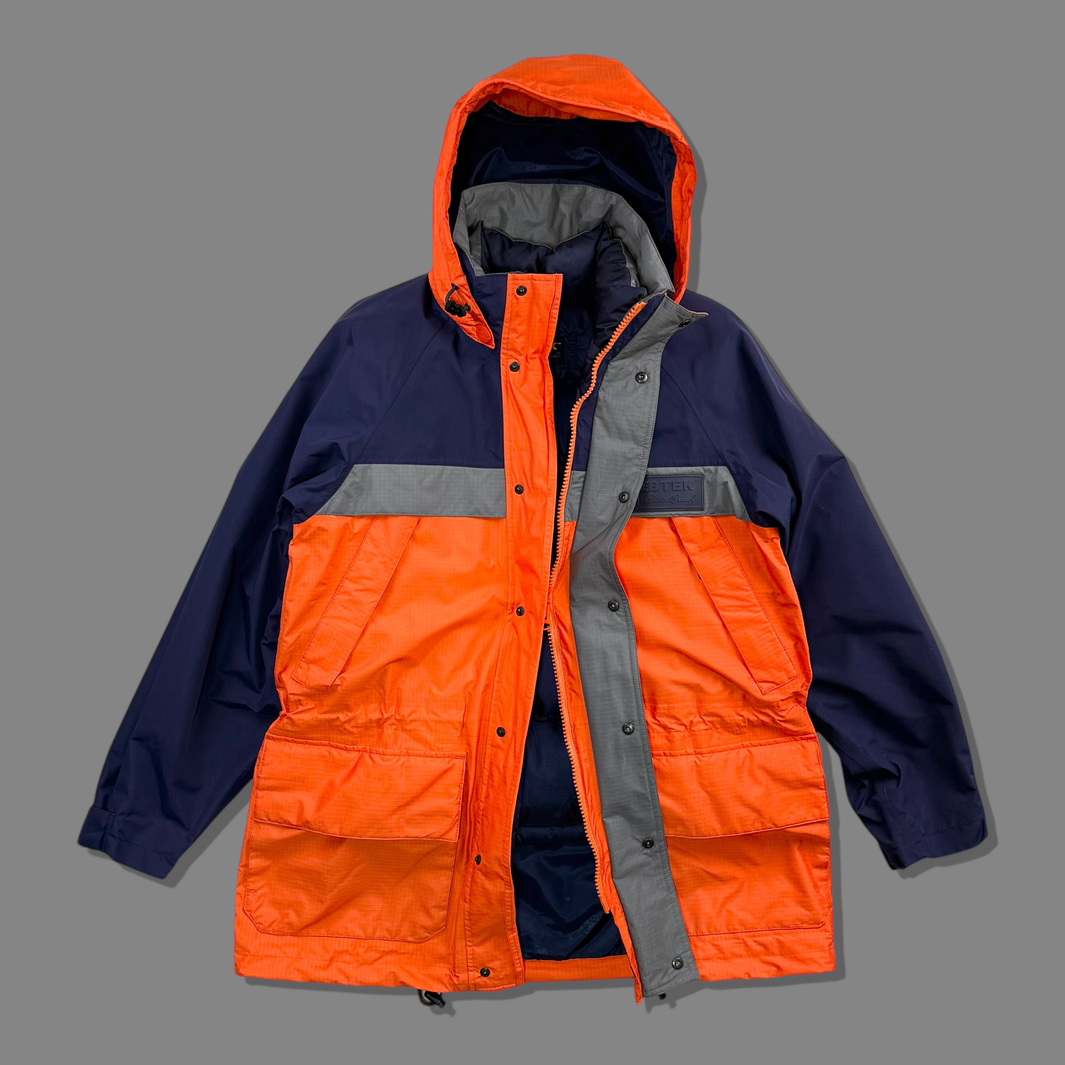 1990年代、エディーバウアーのテクニカルラインEBTEKから展開された、ゴアテックスシェルとダウンライナーを組み合わせた3WAYマウンテンパーカーです。