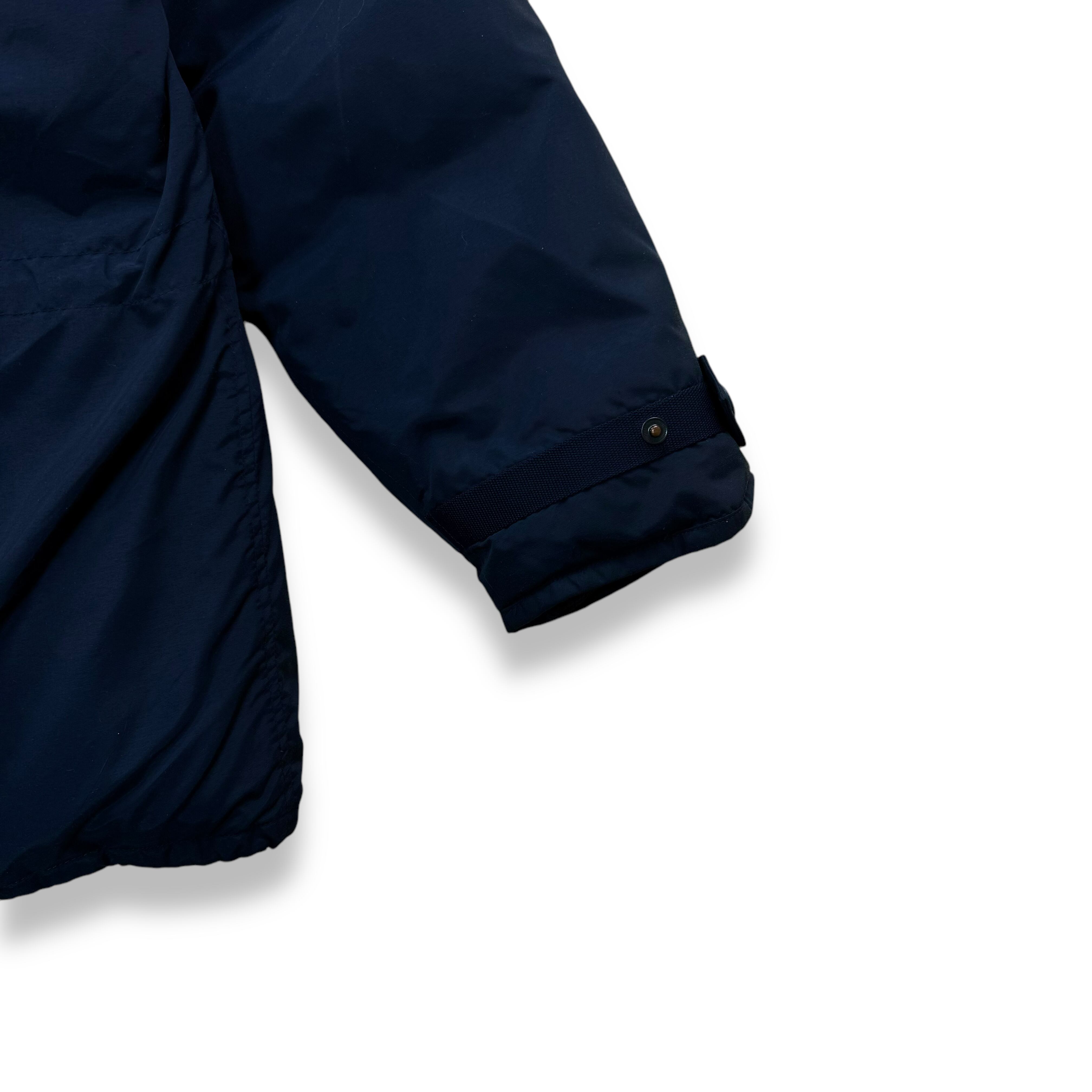 このシリーズは、ポケット形状、袖付け、襟まわりなどが年式によって細かく異なるのも特徴です。本モデルは、防風・撥水性に優れたナイロンシェルを使用し、フロントにはフラップ付きポケットとジップポケット、袖口には内側リブカフを搭載した実用的な構造。フロントはダブルジップ+スナップボタンの比翼仕立てで、風の侵入を抑えつつ、裾にはドローコードを備えシルエット調整と防寒性をさらに確保。すっきりとした見た目に仕上がっています。