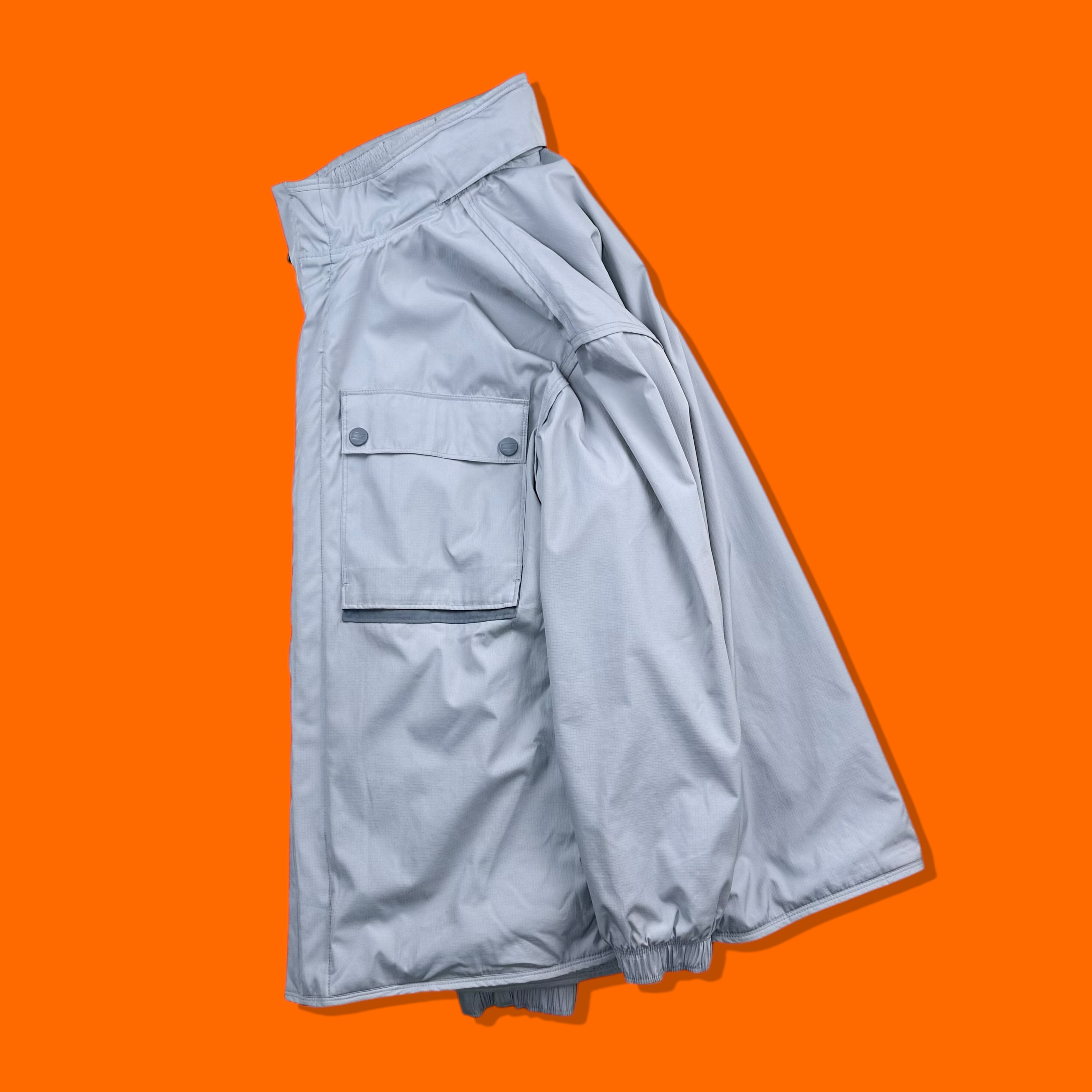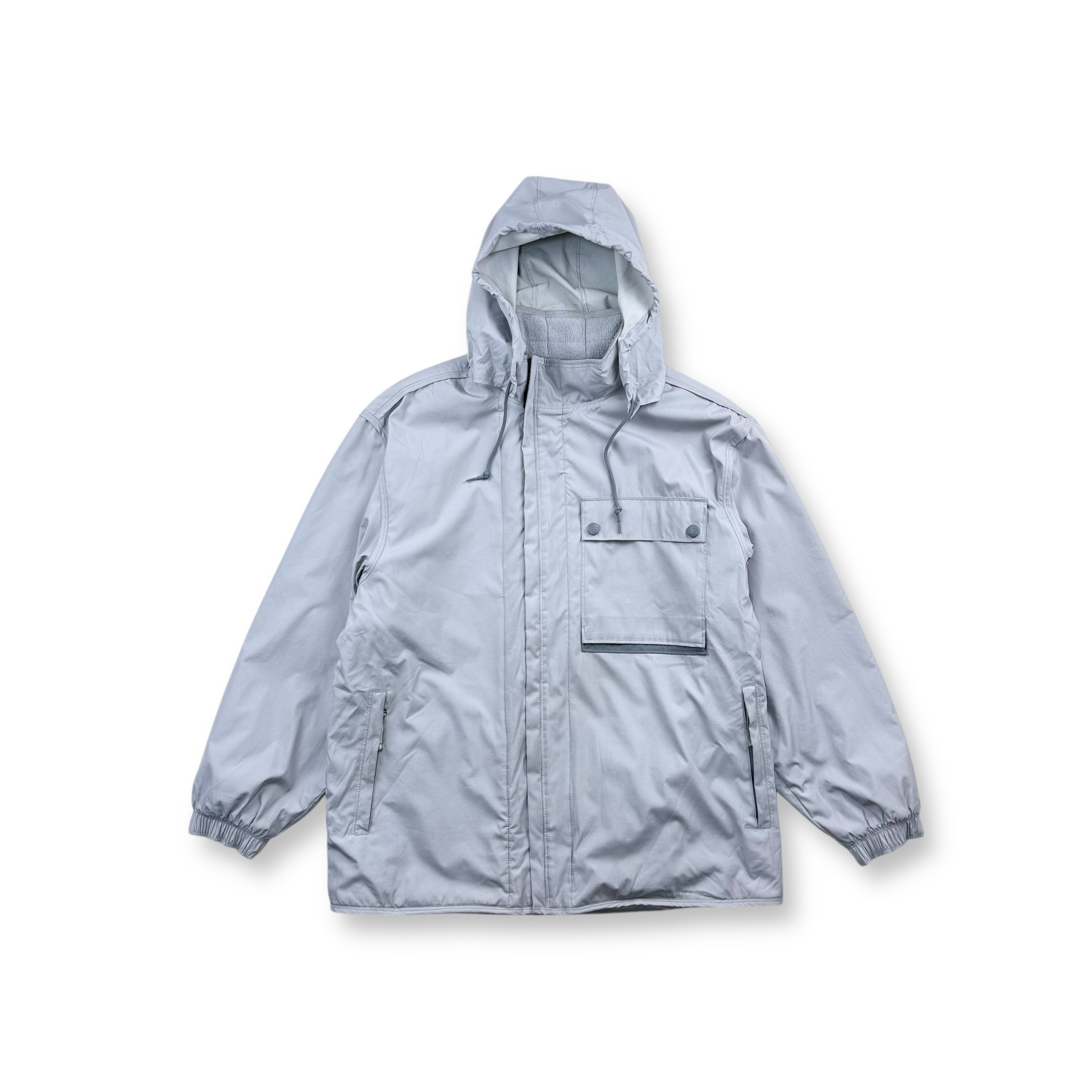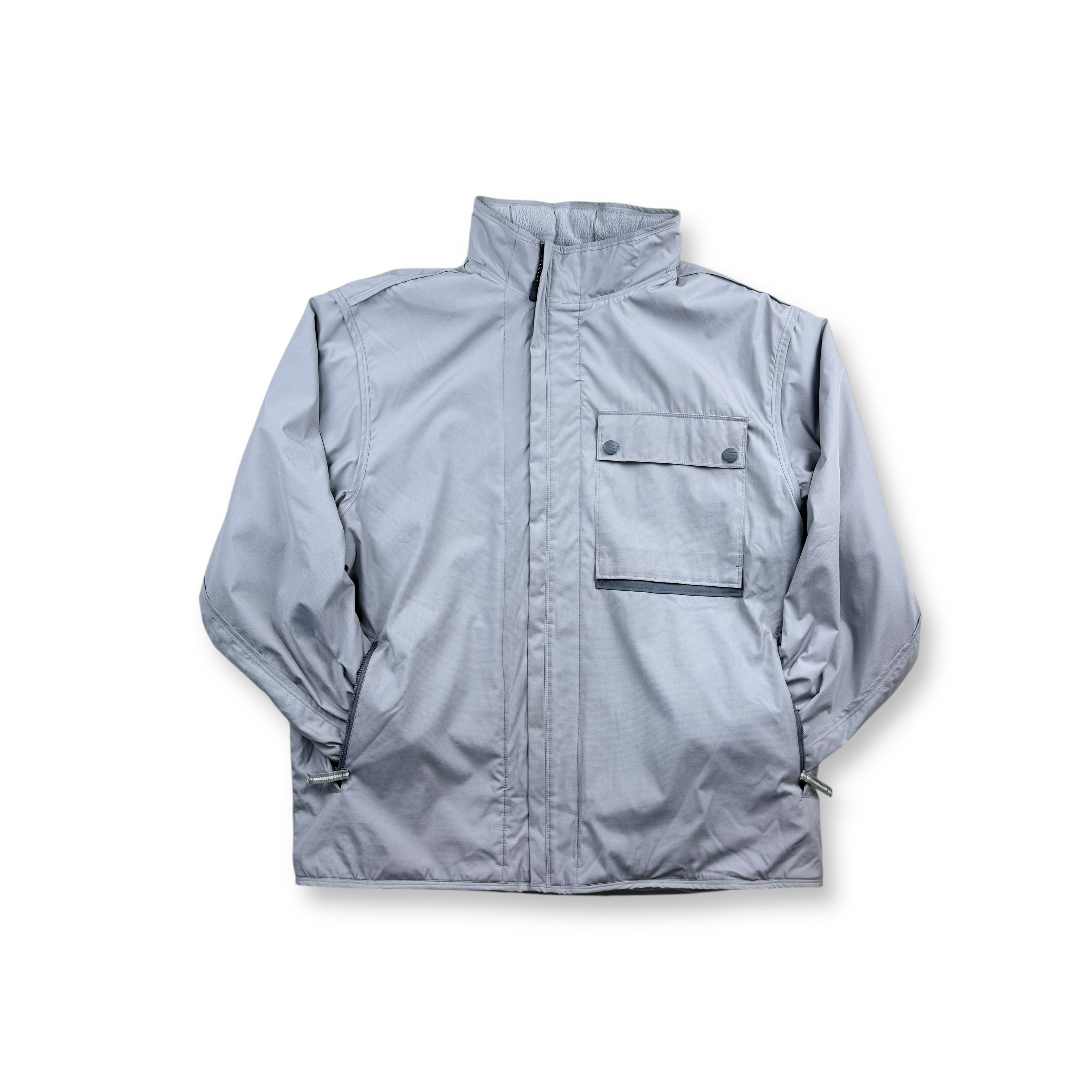 クリーンなライトグレーで、無機質なトーンとミニマルな構成が際立つ、Y2Kのテクニカルムードを感じさせる一着です。