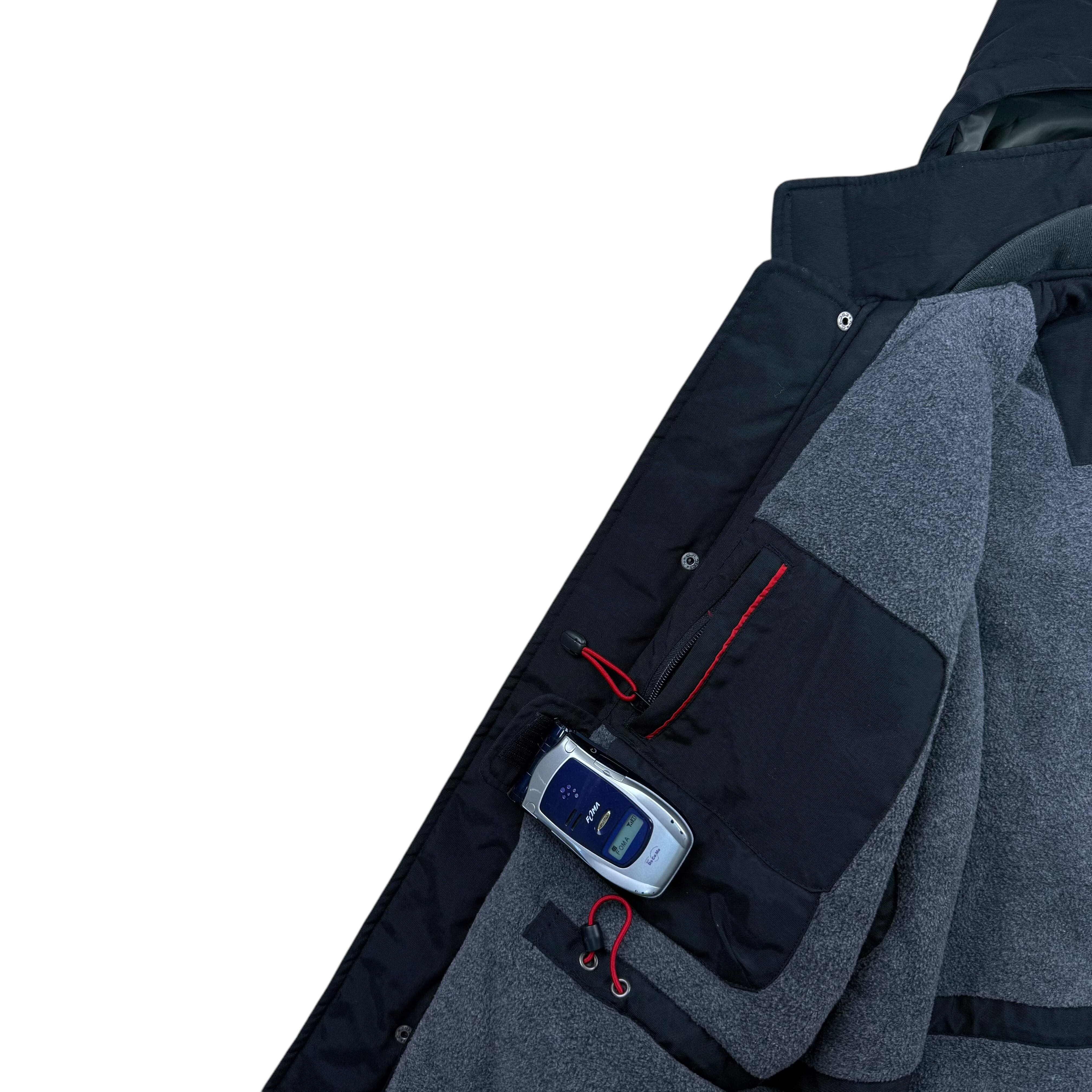 内側は広範囲をフリースで切り替え、肌当たりが柔らかく保温性も高い仕上がり。内ポケットには**当時の携帯電話用“セルフォンポケット”を備え、さらにイヤホンコードを通すためのイヤホンホール(コードホール)も装備。音楽プレーヤーなどを使いやすく設計された、Y2KのGAPならではのギア的ディテールが魅力です。