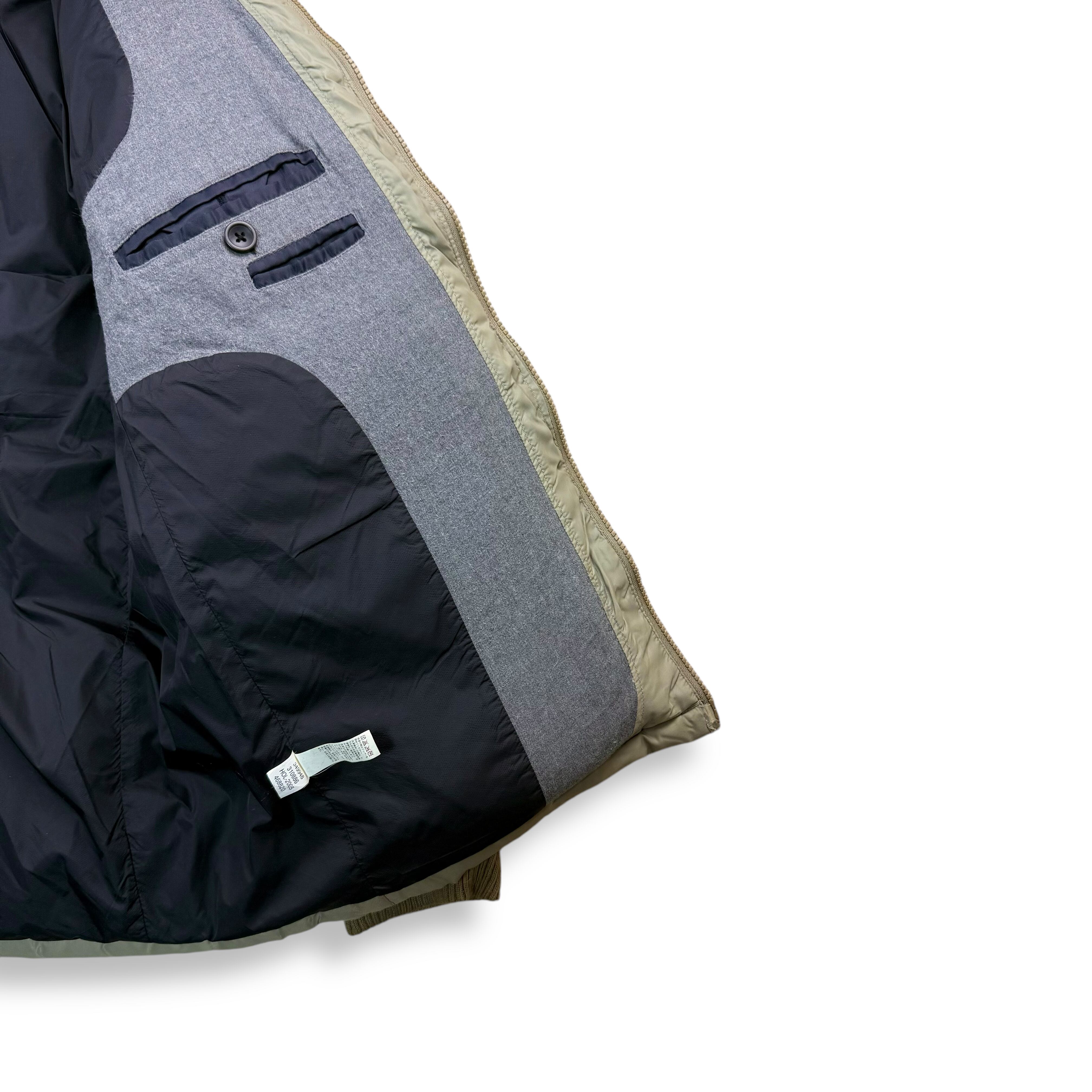 身頃の裏地には滑らかなナイロン、袖裏には軽量ポリエステルを使用し、着脱のしやすさを高めた構造に。中綿には75%以上のダウンを含む本格的なダウンパディングを採用し、見た目以上の暖かさを確保しています。